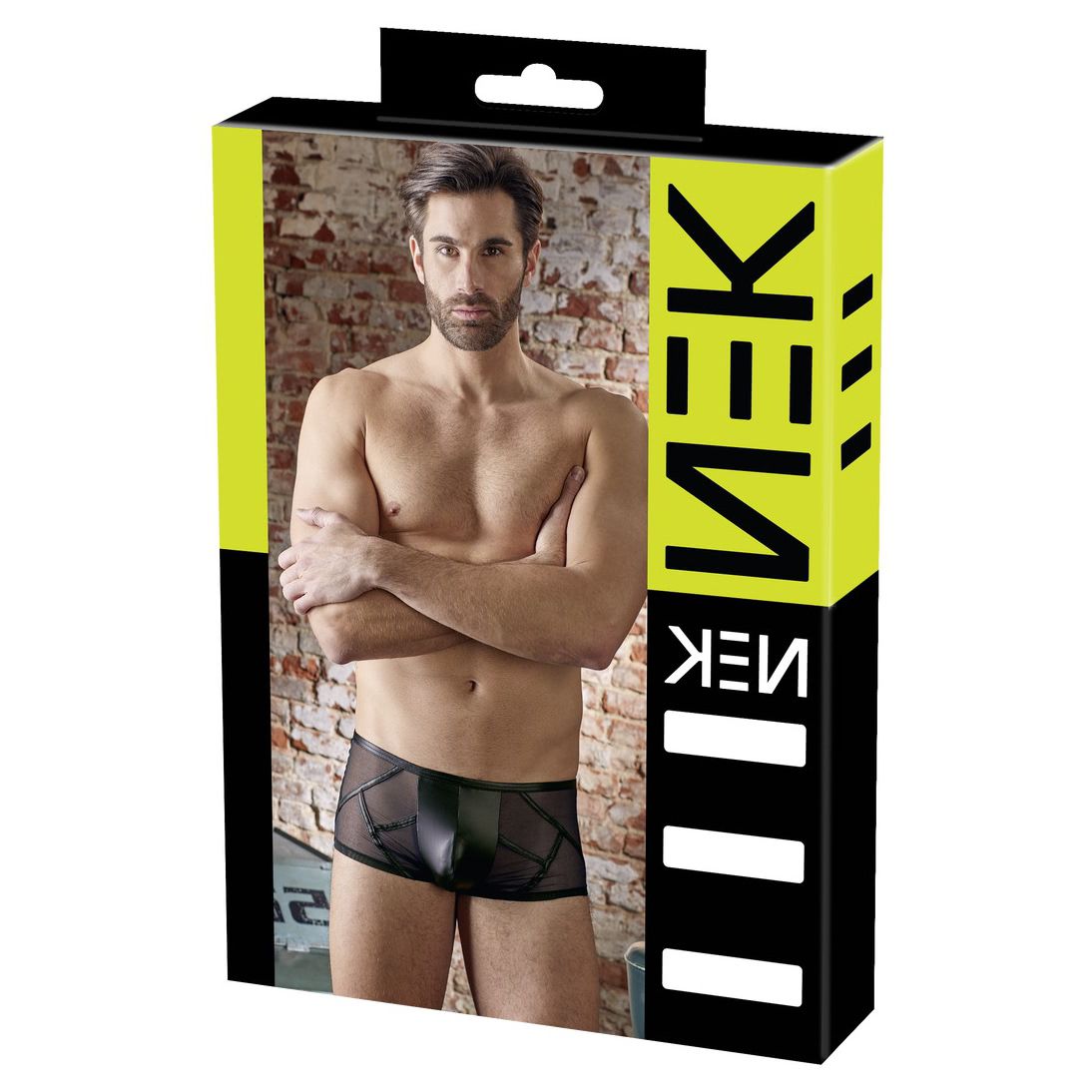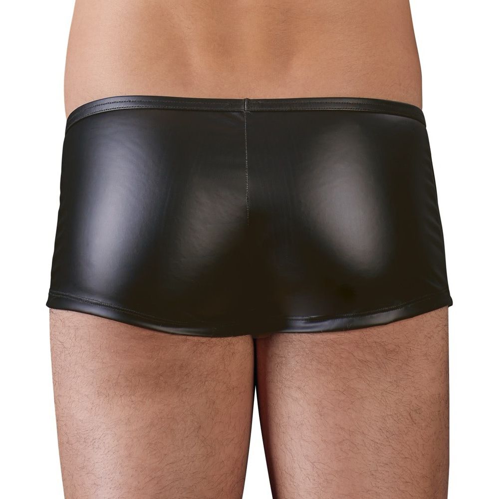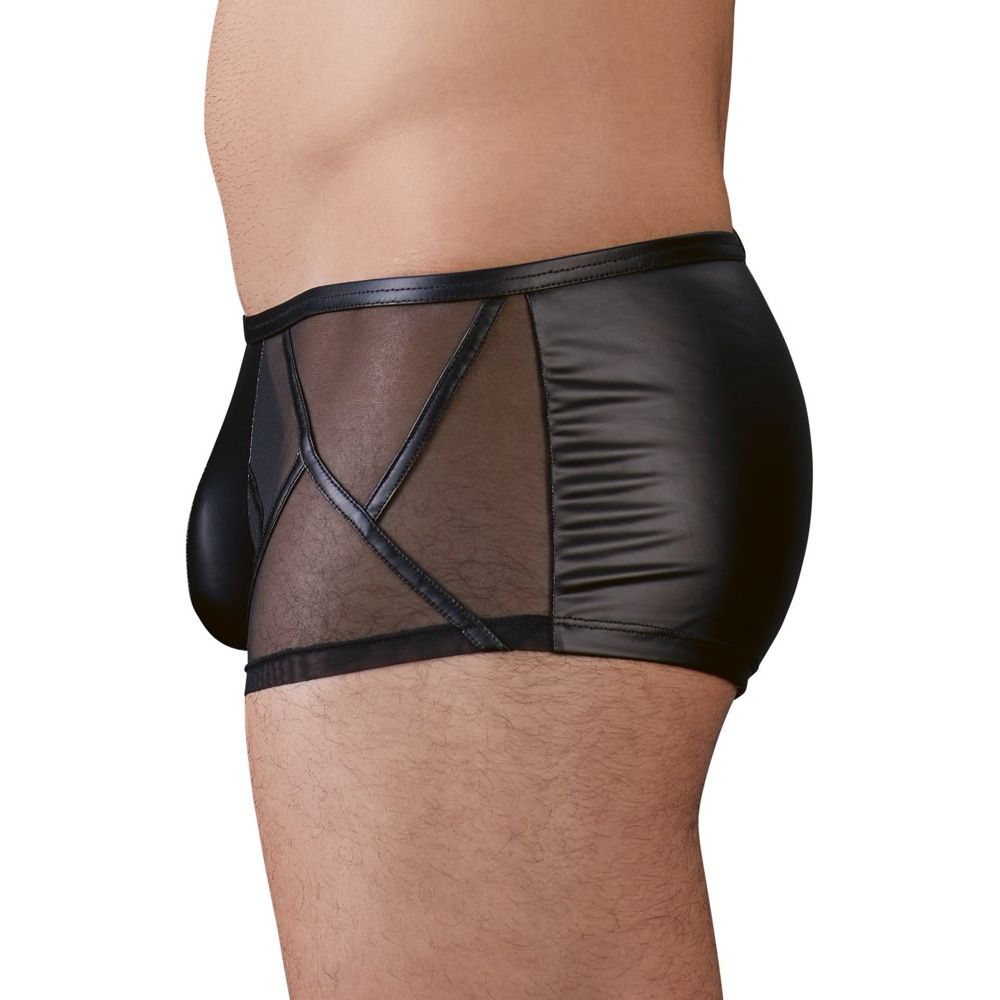 Body Overall negru pentru bărbați din 2 materiale deosebite ce creează un design extrem dintr-o structură de linii. Cu fermoar în față și în zona intimă.