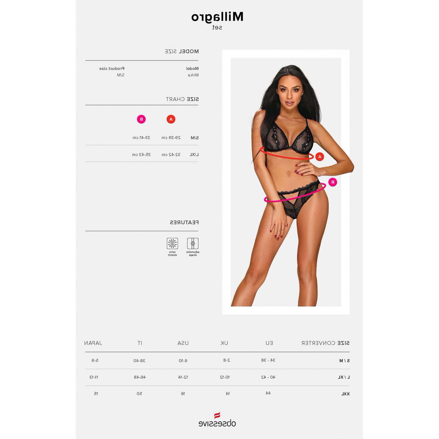 Set Obsessive Millagro întunecat este o piesă de îmbrăcăminte fantastică și nemaiîntâlnit de fermecătoare, inventată și concepută de prestigiosul brand de lenjerie Obsessive din Polonia.