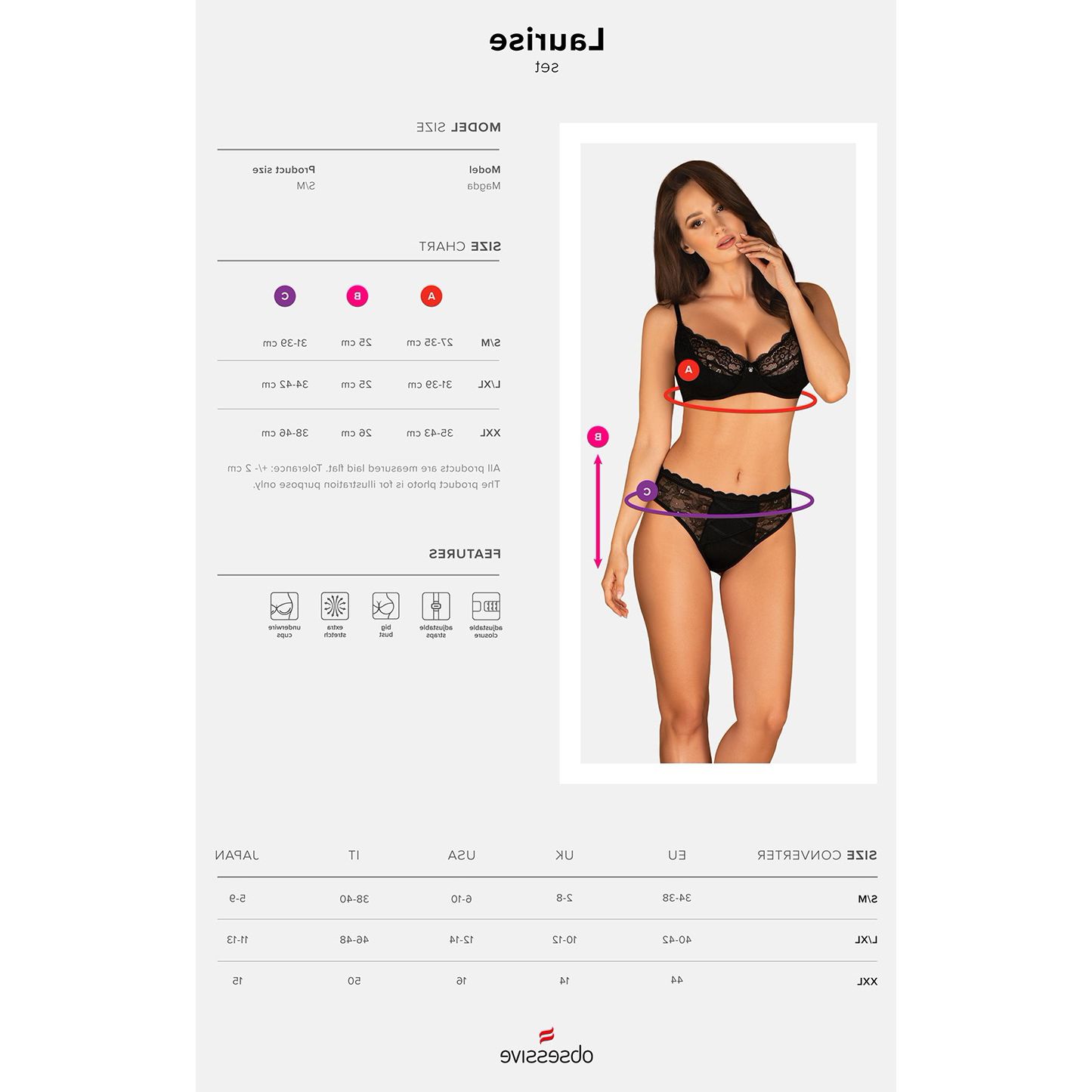 Set Obsessive Laurise Negru este un obiect de îmbrăcăminte uluitoare și exagerat de încântătoare, gândită și concepută de valorosul brand de lenjerie Obsessive din Polonia.