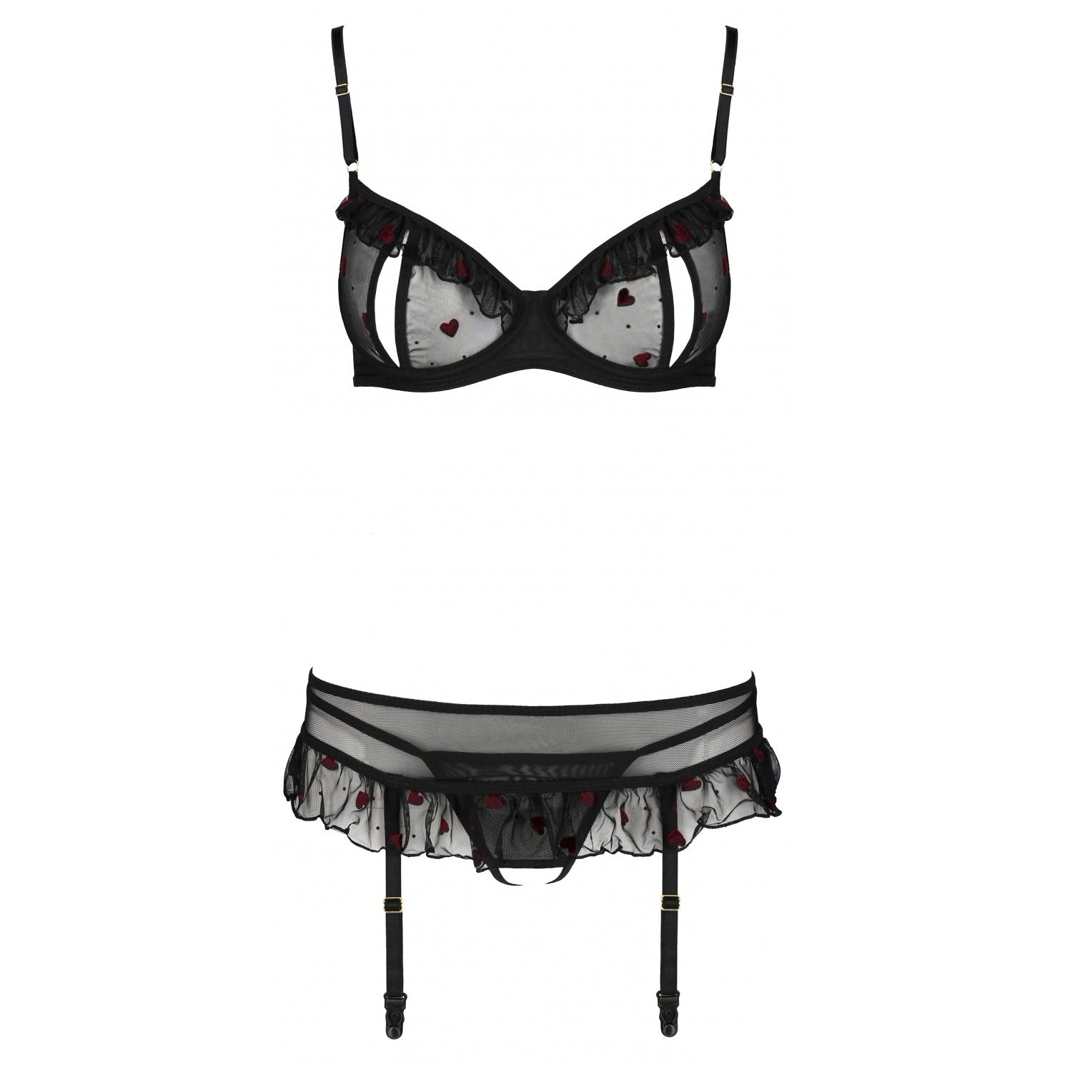 Set Lovelia - Decorațiuni romantice și decupaje tentante vor atrage femeile cărora le place lenjeria de înaltă calitate! Acest set este o garanție a unui formă nepământesc și a unui timp petrecut în mod plăcut! Lenjeria intimă disponibilă pe închis la culoare va fi utilă în multe ocazii!