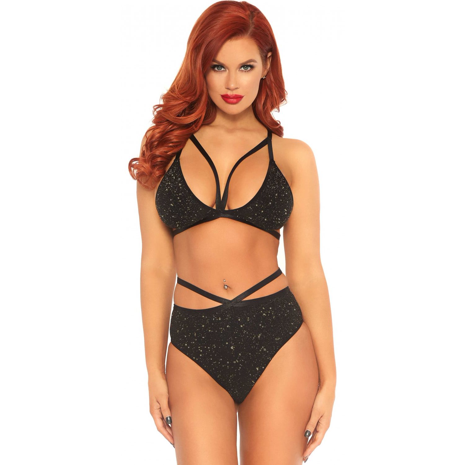Set Leg Avenue Lurex Opaque Negru S-M Lenjerie Super Sexy