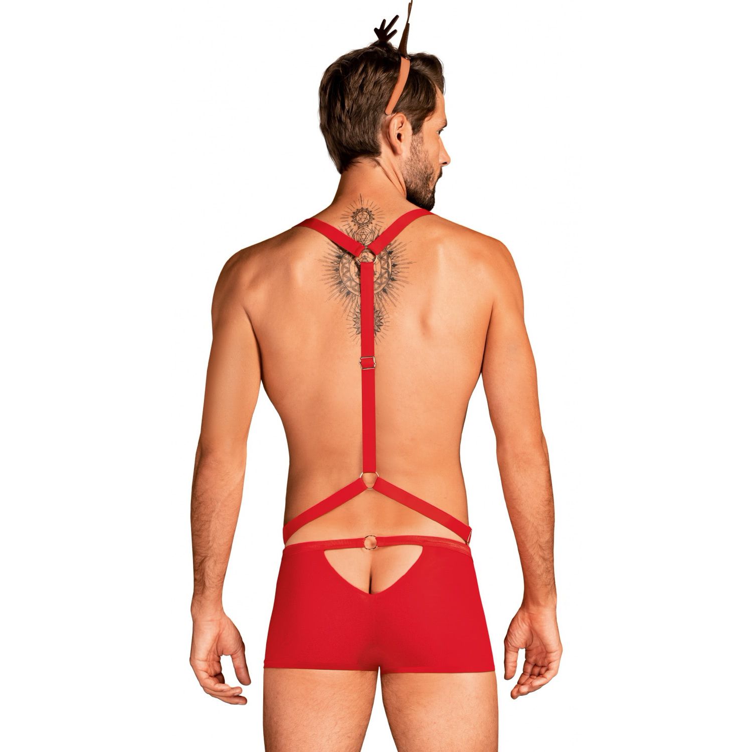 Hamul și boxerul de un roșu aprins fac o pereche nespus de wow, gata de răutăți în dormitor. Boxerul este făcut din material ușor elastic. Bentiță cu urechi de ren este un element deosebit de fermecător ce completează setul. Produsul este fabricat dintr-un material flexibil si se potriveste marimilor L si XL.