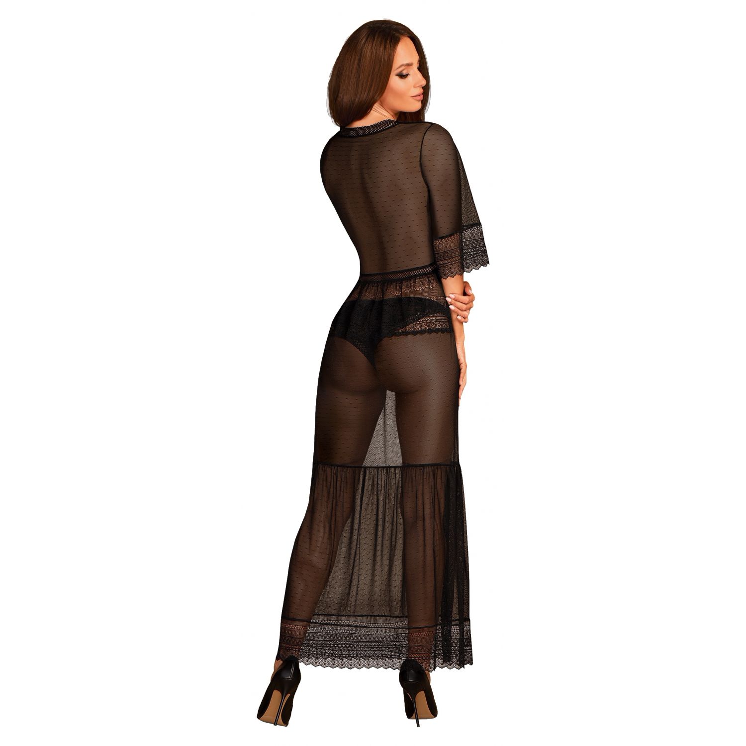 Halat Obsessive Estiqua închis la culoare este o piesă de îmbrăcăminte uimitoare și fantastic de seducătoare, concepută și realizată de prestigiosul brand de lenjerie Obsessive din Polonia.