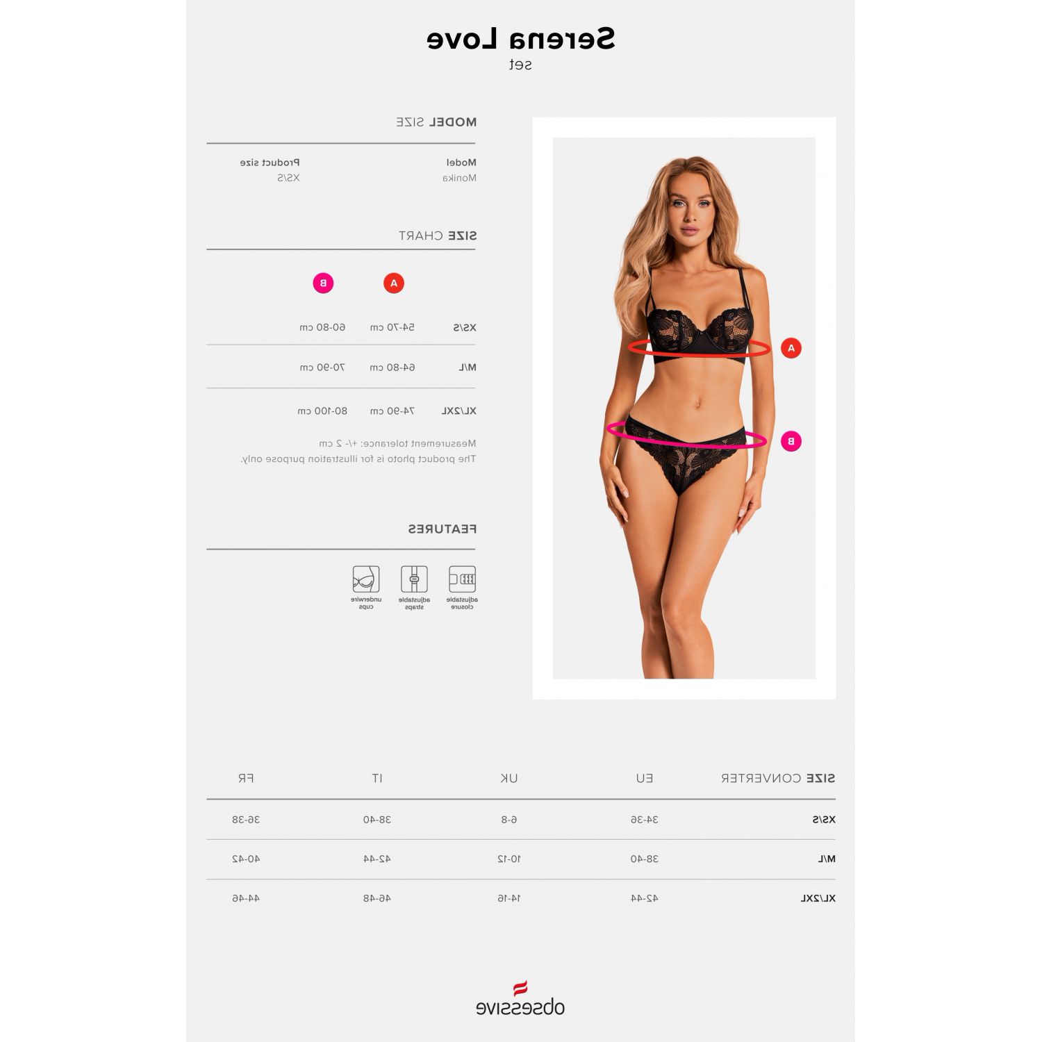 Set Obsessive Serena Love Negru este o piesă de îmbrăcăminte tulburătoare și neînchipuit de cuceritoare, desenată și produsă de prestigiosul brand de lenjerie Obsessive din Polonia.