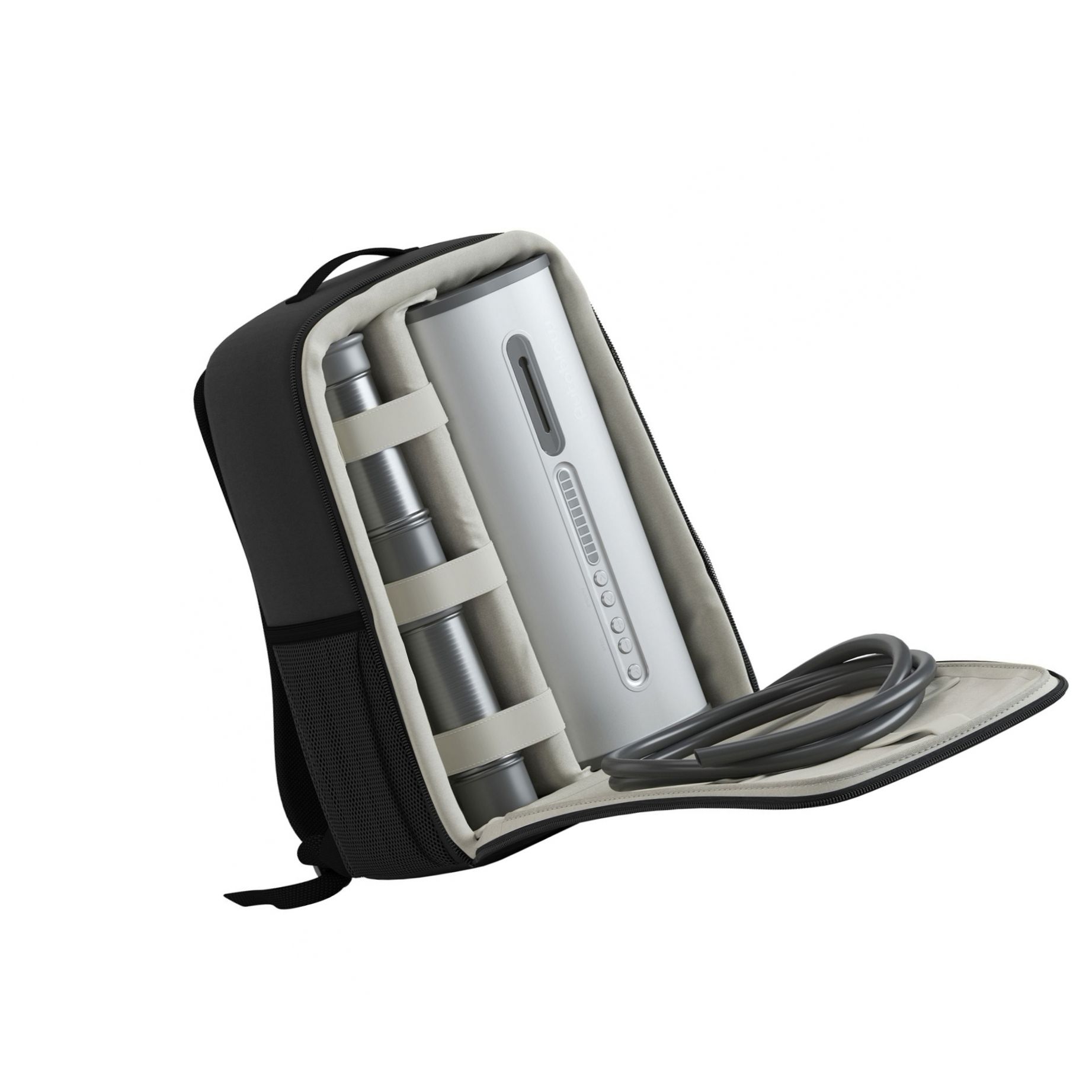 Valvele electronice încuviințează control fin al nivelului de aspirație și al porțiunii stimulate, astfel încât reglajul să răspundă preferințelor personale. Pentru transport și păstrare, toate accesoriile vin într-un rucsac de calitate, care garantează discreție. Motorul industrial funcționează surprinzător de silențios, generând doar un zumzet redus.