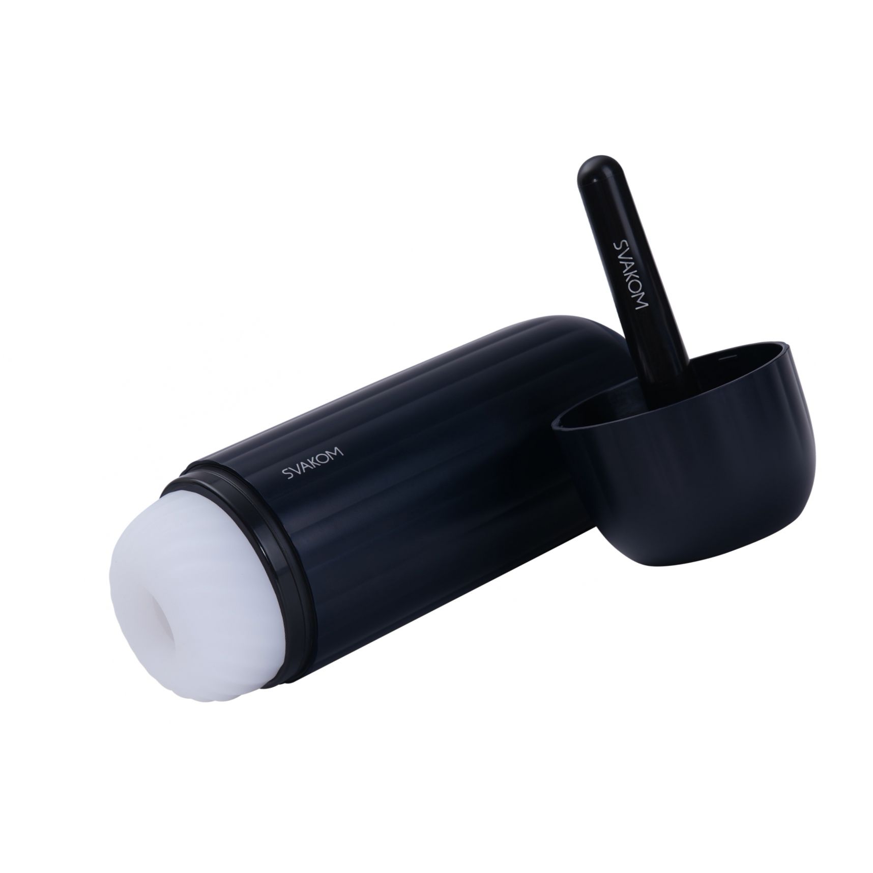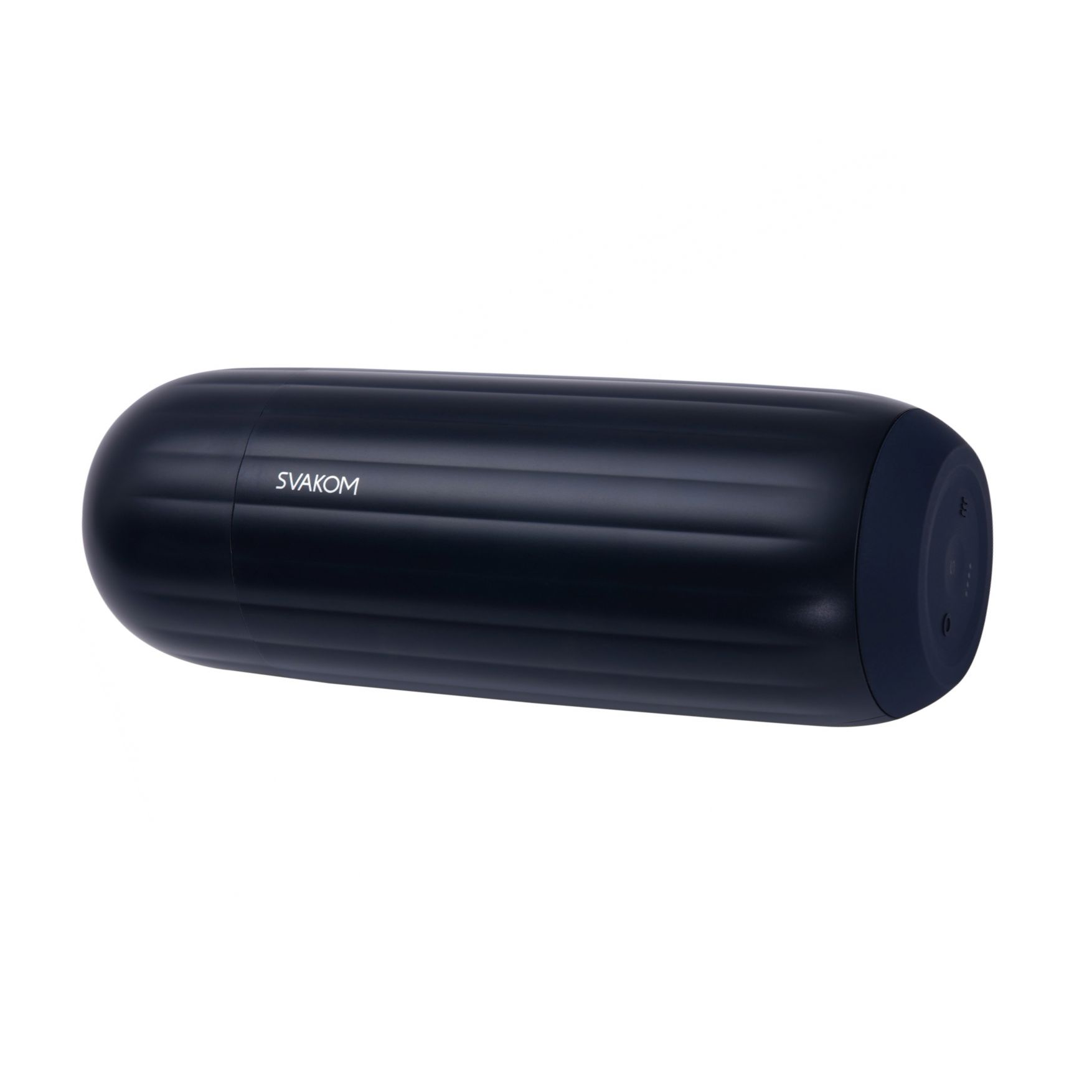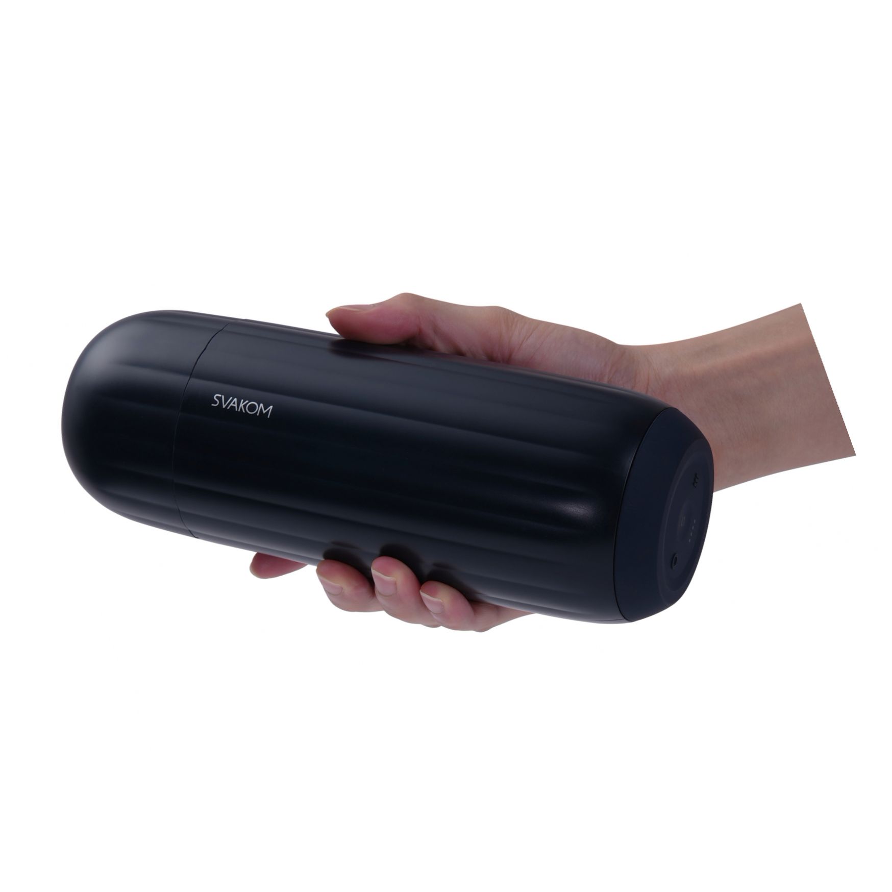 Carcasă ergonomică și sleeve din material sigur: sleeve-ul extensibil din TPE este texturat pentru masaj, se poate îndepărta pentru curățare, iar carcasă durabilă asigură transport discret. Conectivitate Bluetooth și aplicația SVAKOM permit personalizarea setărilor și controlul la distanță.