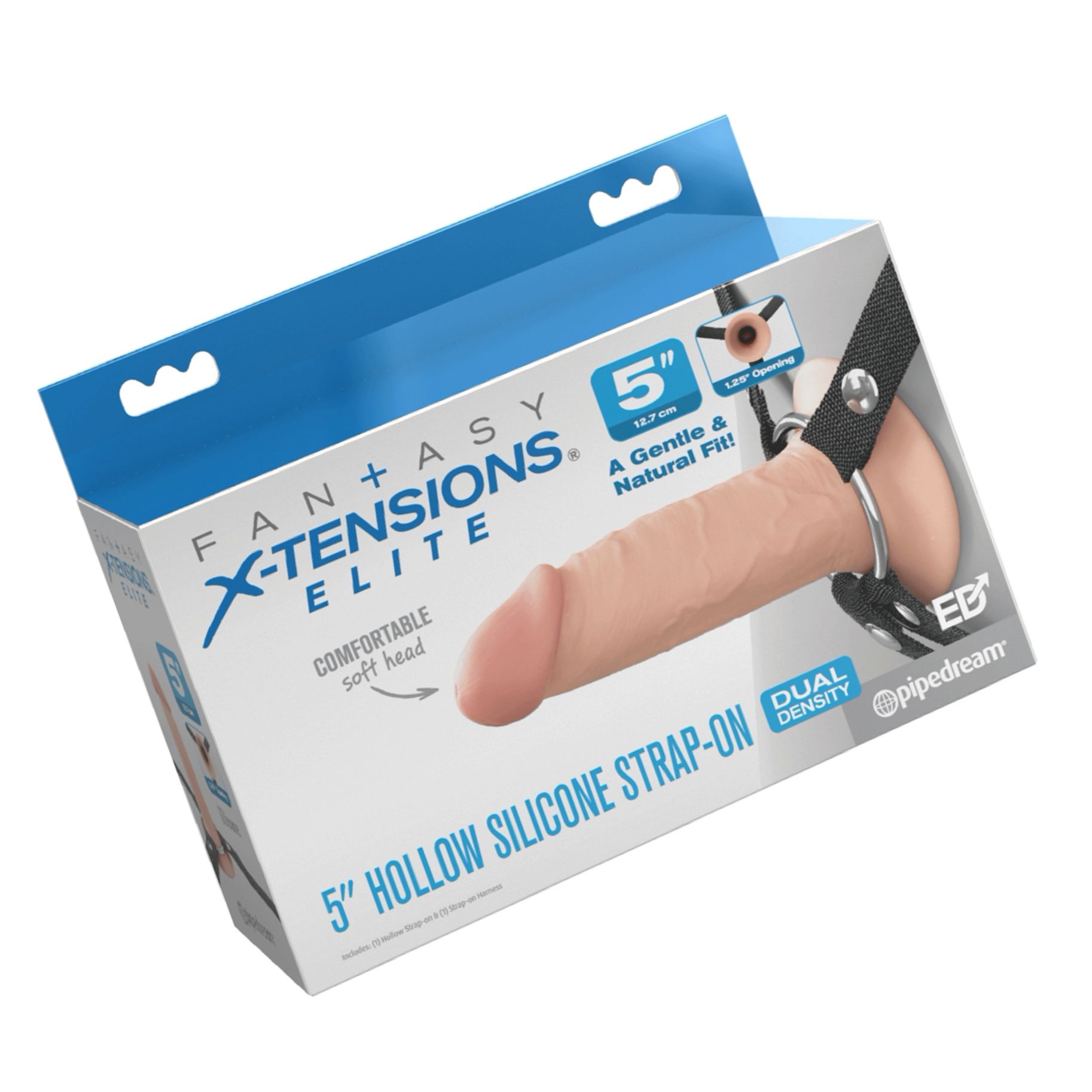 Beneficii și caracteristici: - Material: Elite Silicone, dual density (vârf moale, bază mai fermă) - Partea interioară gol, potrivit atât pentru acoperire cât și pentru utilizare ca extensie - Lungime completă indicativă: 12,7 cm; mărime inserabilă aproximativ 8,9 cm; diametru aproximativ 3,2 cm - O-ringuri metalice: 4,4 cm (1.75") și 5,08 cm (2") – se pot monta ușor - Ham reglabil din nylon premium, potrivit pentru talie 61–134,6 cm - Ușor de curățat: apă caldă și săpun sau soluție specială pentru jucării - Compatibil cu lubrifianți pe bază de apă