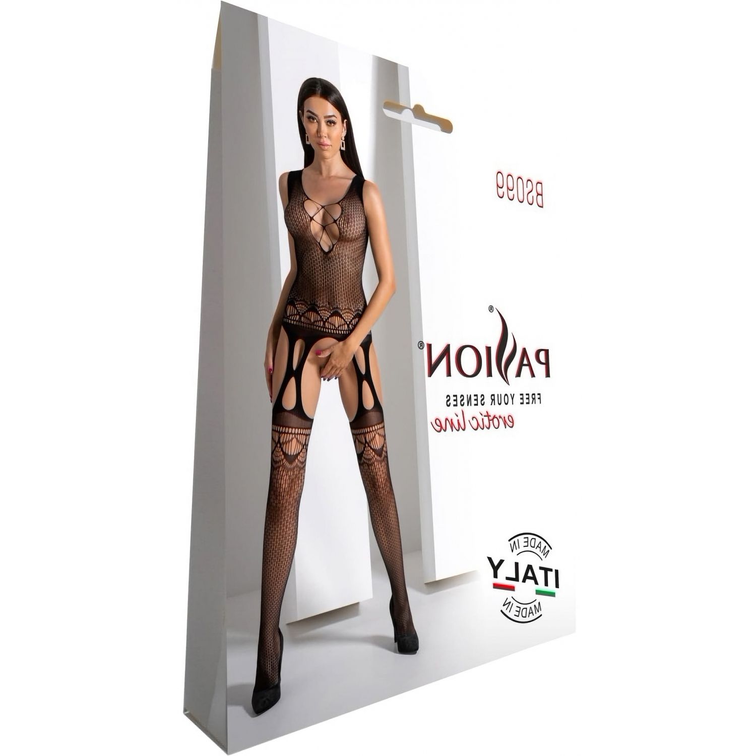 Bodystocking Passion BS099 Negru este o creație de lenjerie încântătoare și exagerat de răpitoare, gândită și produsă de prestigiosul brand de îmbrăcăminte Passion din Polonia.