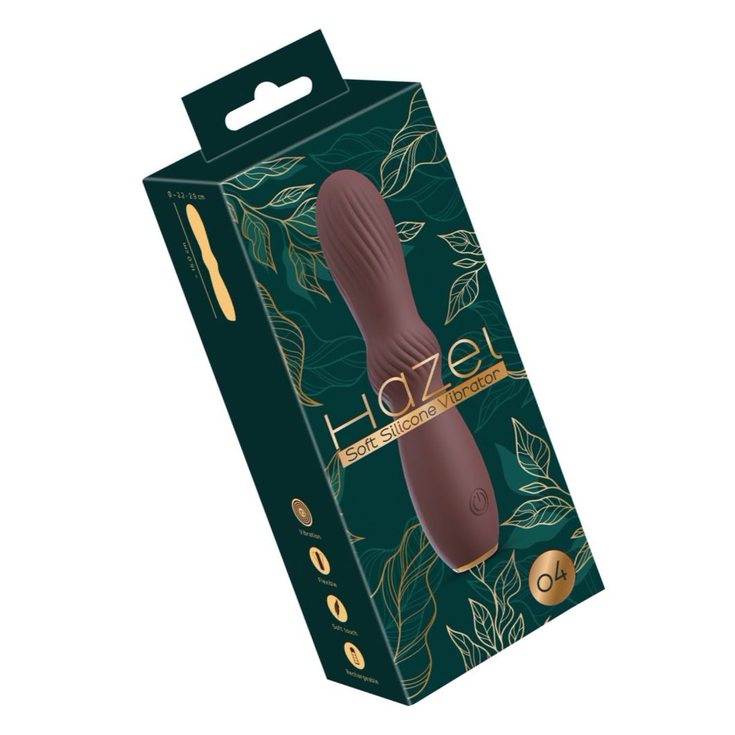 Hazel 04 este un vibrator compact, cu cap flexibil și 10 chipuri de vibrație. Suprafață jelly din silicon, cu acumulator prin USB și ușor de purtat. Lungime 15 cm (introducere 12 cm), diametru 2,2–2,9 cm, greutate 89 g.