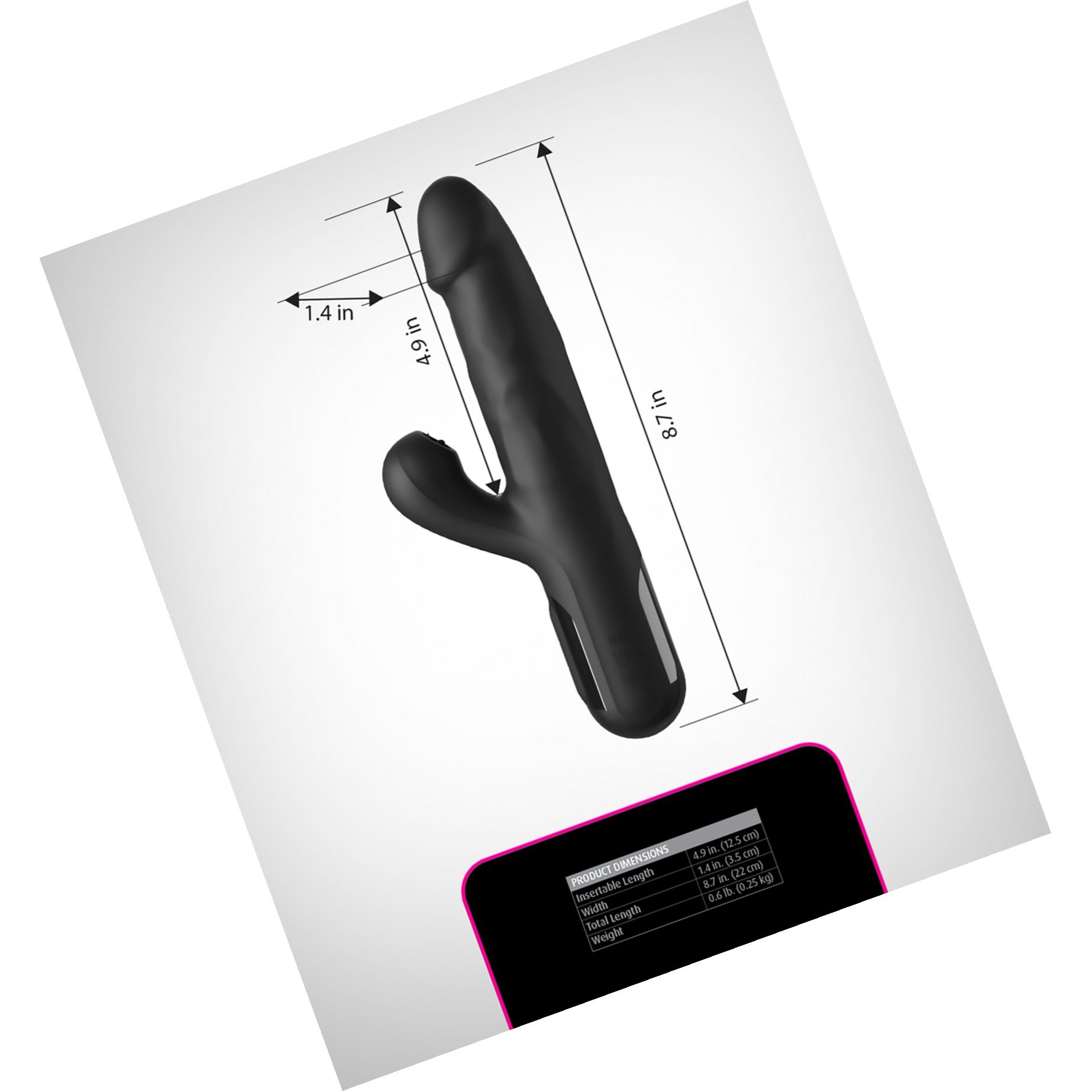 Informaţii tehnice şi întreţinere: conține cablu USB pentru încărcare şi are blocaj pentru transport. Este rezistent la apă pentru curăţare mai uşoară. Folosiţi doar lubrifianţi pe bază de apă şi produse de curăţare compatibile cu siliconul. Materiale: silicon şi ABS. Dimensiuni: extindere imensă 22 cm, mărime inserabilă 12,5 cm, diametru maxim 3,5 cm; greutate aproximativ 250 g. Pentru a încerca trairi mai distincte si o glidare mai usoara va recomandam cumpararea unui lubrifiant. Spalati acest produs atat inainte cat si dupa întrebuințare cu o solutie speciala de igiena pentru astfel de produse.