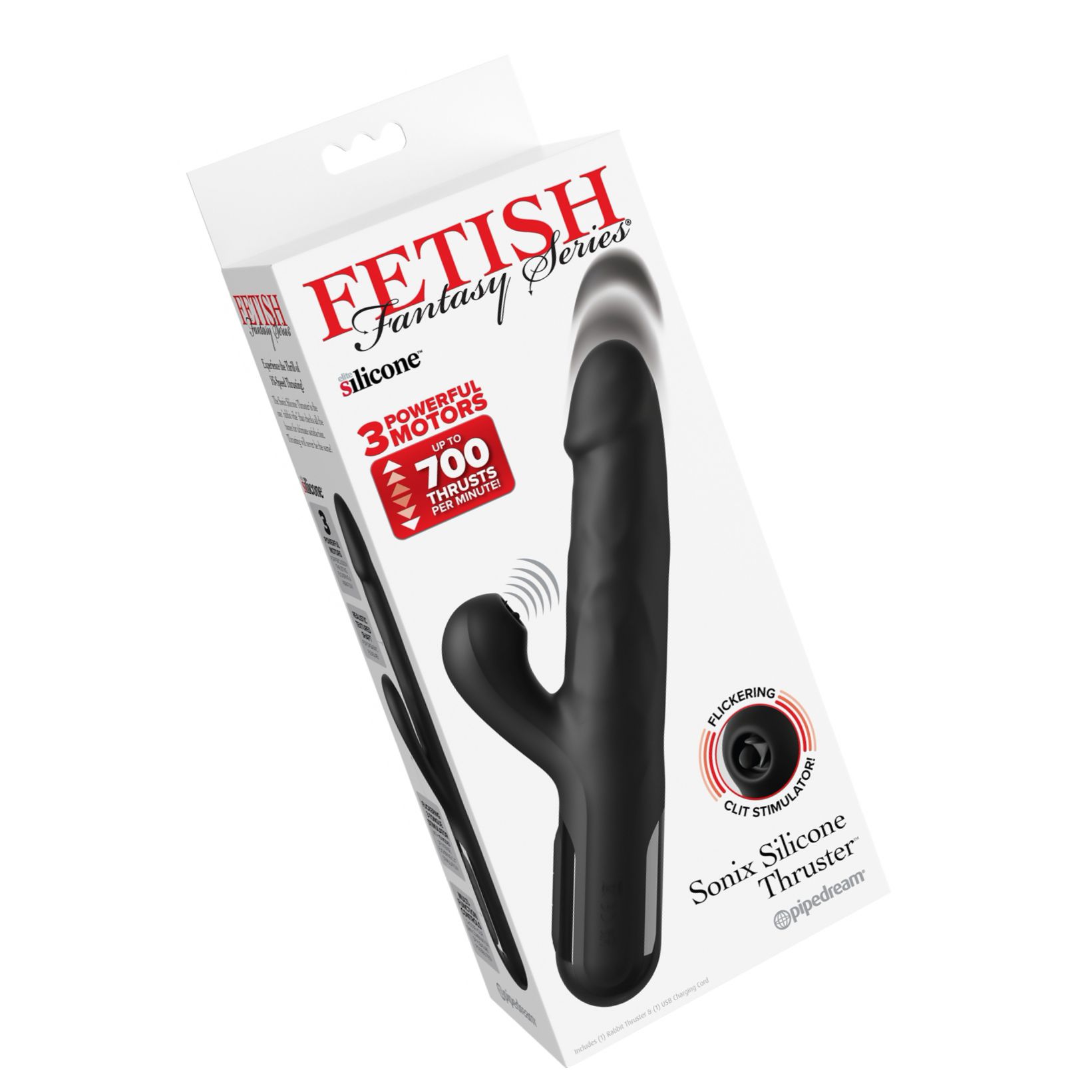 Sonix Thruster de la Pipedream este un vibrator iepure reîncărcabil, proiectat pentru stârnire internă şi externă simultan. Forma cu ax puternic oferă un mecanism ritmic de împingere, iar vârful cu vibraţii suplimentează variaţii de intensitate. Partea pentru clitoris are trei limbi vibrante care conferă atenţie direcţionată.