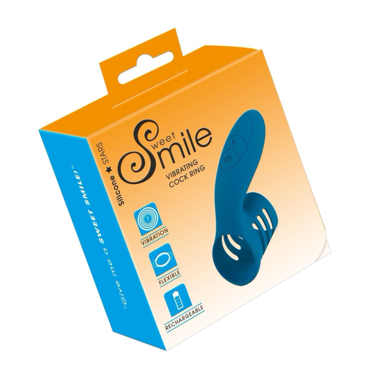 Inel vibrant Sweet Smile din silicon moale, cu stimulator orientabil și 7 chipuri de vibrație. Reîncărcabil, conține cablu USB; estetică flexibil extra-lat pentru potrivire confortabilă și stârnire externă direcționabilă.