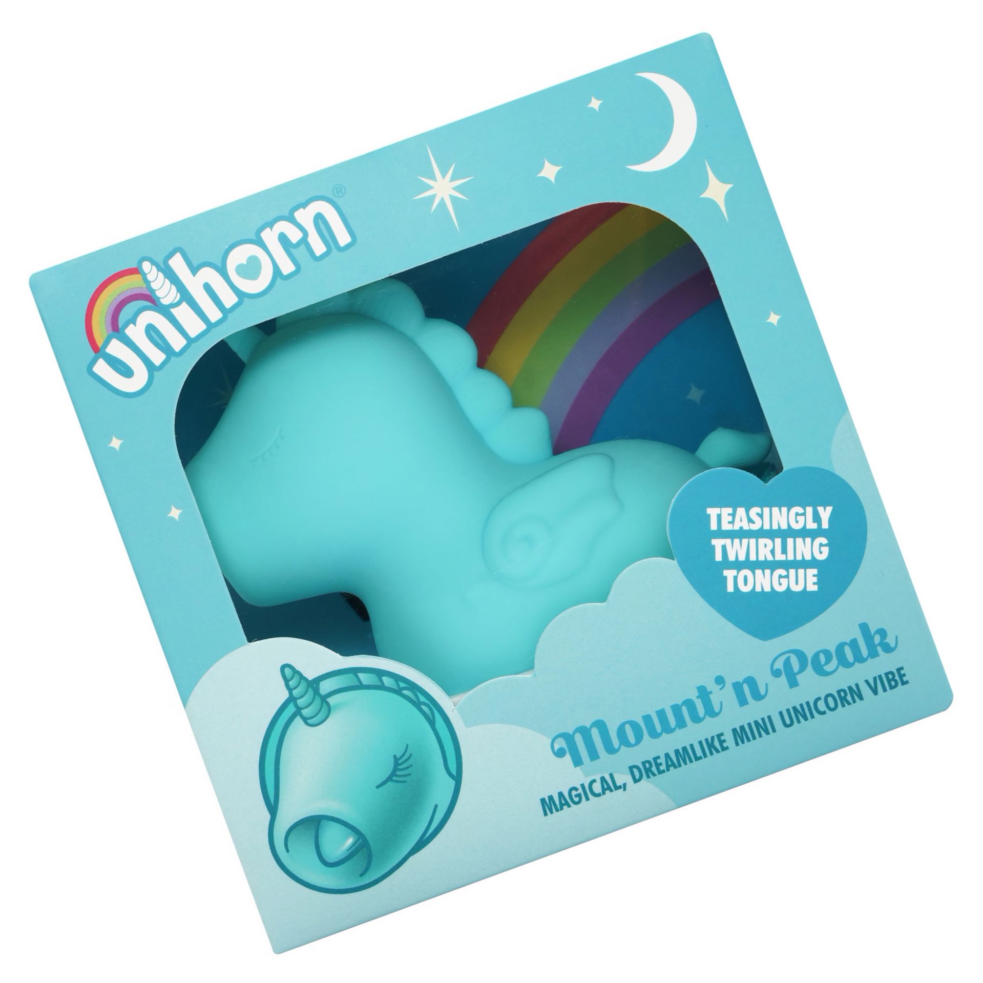 Unihorn Mount Peak este un mini vibrator în expresie de unicorn, proiectat pentru utilizare discretă acasă sau în deplasare. Designul compact ascunde două motoare deluxe care oferă putere constantă și stabilitate.