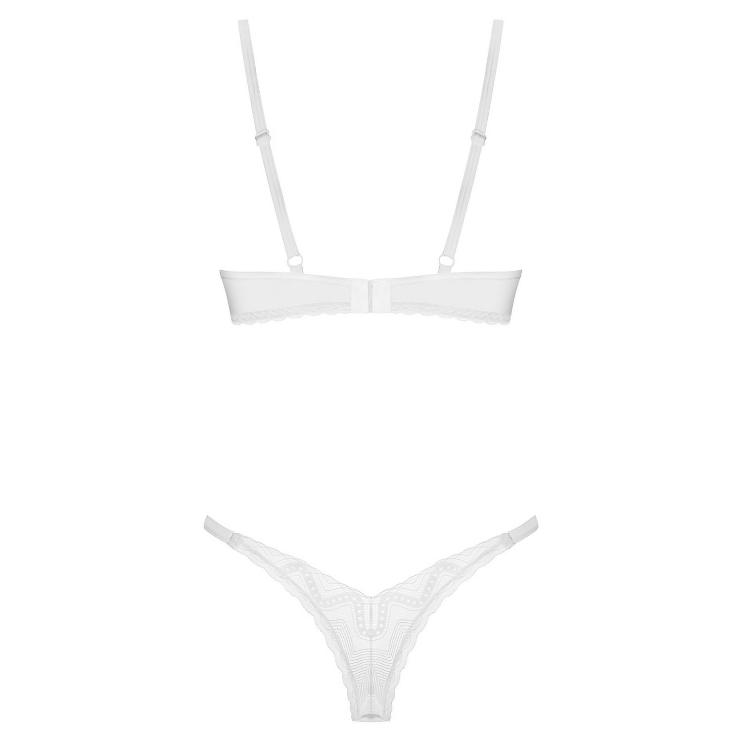 Set Obsessive Alissium Alb este o achiziție de lenjerie extraordinară și extrem de fascinantă, ilustrată și concepută de prestigiosul brand de lenjerie Obsessive din Polonia.