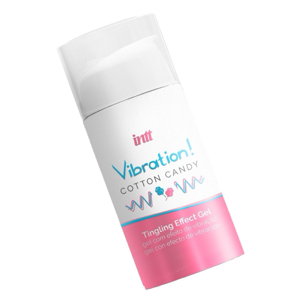 Gel intim unisex INTT Vibration Cotton Candy, 15 ml. Mireasmă dulce de vată de zahăr, efect vibrant-pulsant și ușor încălzitor pentru intensificarea sensibilității. Formula cu extracte vegetale din Amazon, compact și discret. Potrivit pentru atingere oral; testați pe antebraț cândva de utilizare.