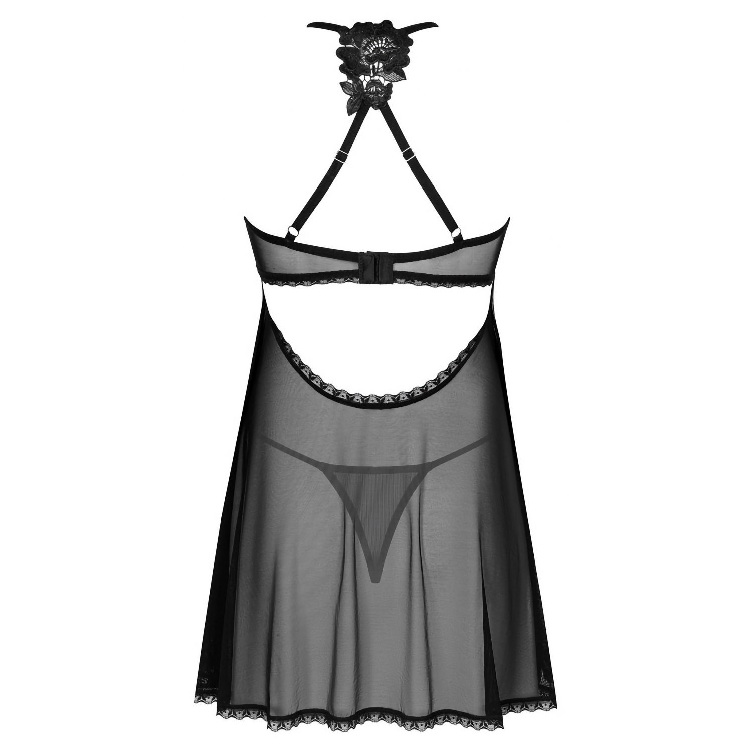 Descoperiți kitul Latinesa de la Obsessive. Babydoll scurt, evazat, în nuanțe de negru, cu zone semi-transparente, plămădit din materii ușoare și elastice pentru libertate de mișcare. Include chilot cu ață asortată. Ornamentul tip bijuterie la decolteu adaugă un accent discret, iar bretelele reglabile, încrucișate la spate, sunt decorate cu broderii fine.