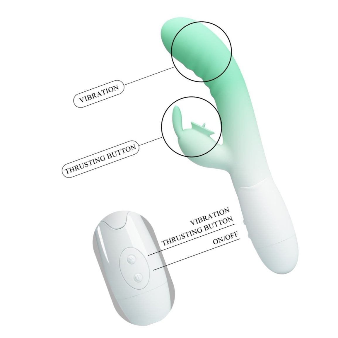 Dispune de 30 moduri de vibrație accesibile printr-un buton intuitiv, pentru a selecta iute ritmul și intensitatea preferată. Designul este cordial cu pielea și ușor de curățat, corespunzător atât pentru începători, cât și pentru utilizatori avansați.