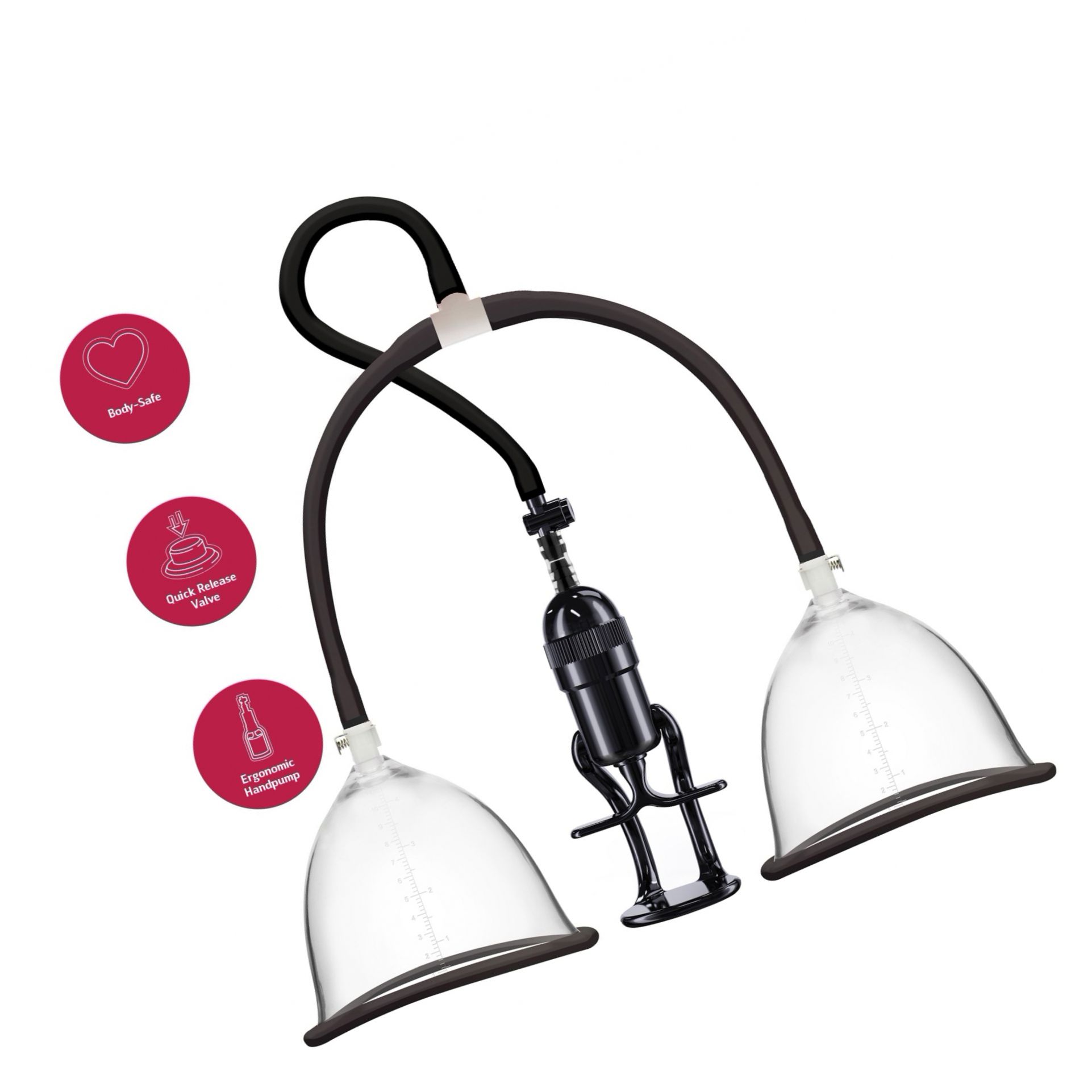 Pompă vacuum She EO pentru stimulare delicată a zonei bustului. Creează şi menţine vacuum din cauza supapei speciale; include valve de eliberare rapidă pentru control instant. Dimensiuni cupă: 11×12×12 cm.