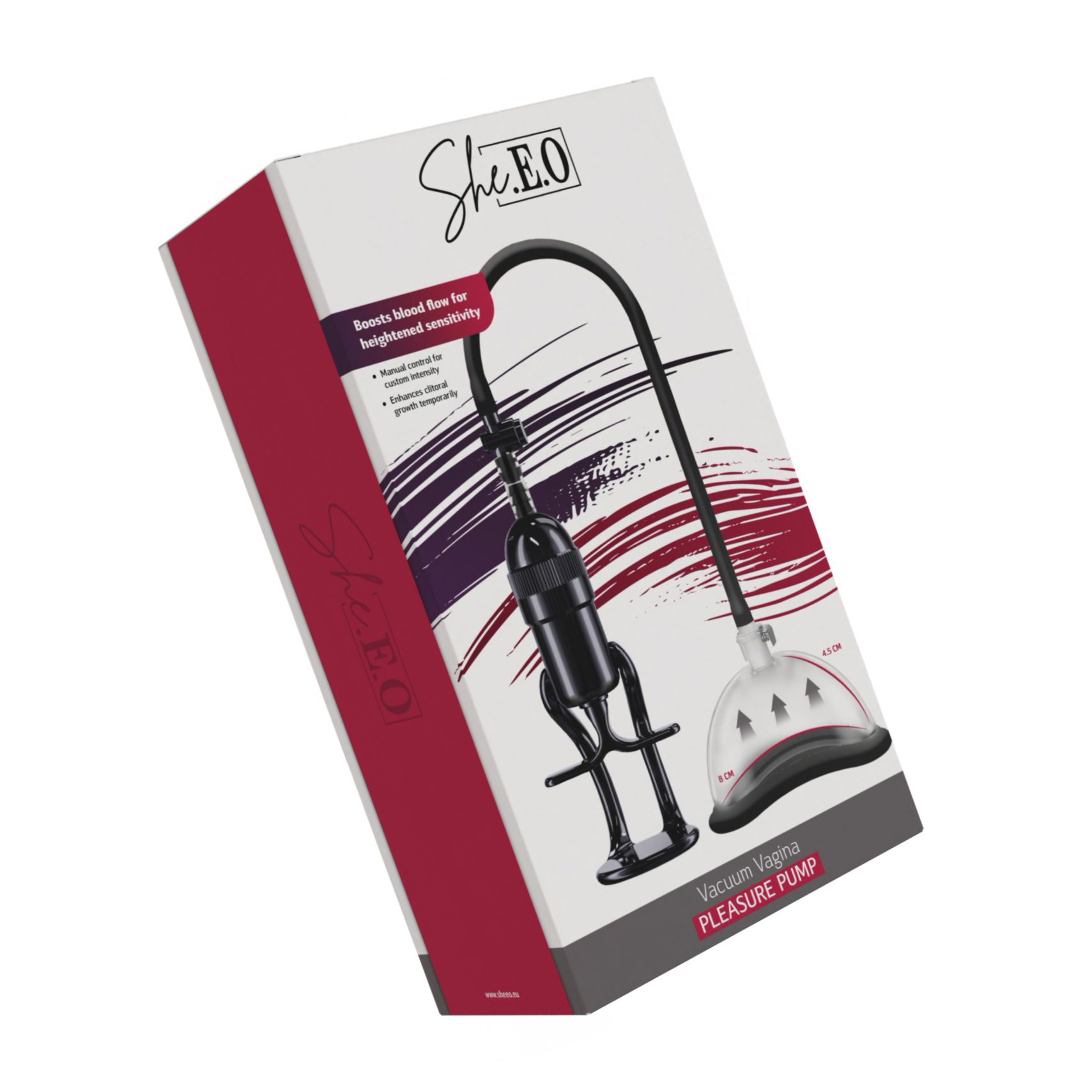 Pompa vacuum She EO pentru zona sexuală sporește receptivitatea și intensifică impresiile prin sucțiune delicată. Conține pompiță manuală, supapă de eliberare grabnică și valvă de menținere a presiunii pentru control sigur. Cupă 4.5 x 8 cm, ring 8 cm.