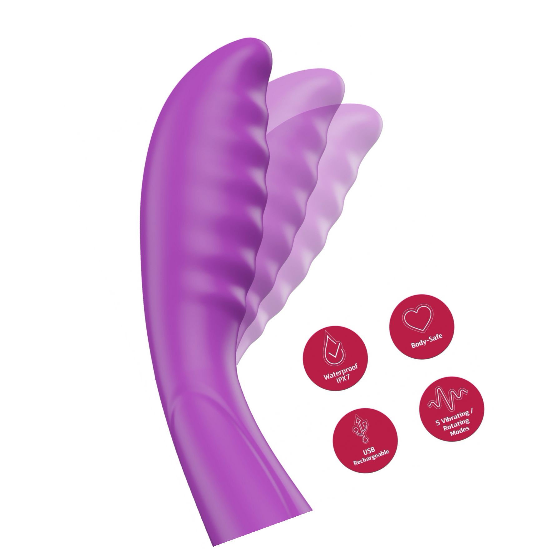 Siliconul sigur pentru corp este fin la mângâiere și ușor de curățat. Motorul cu acumulator oferă 10 combinații de vibrație și tapping, pentru reglaj precis. Protecția IPX7 îl face rezistent la apă, pentru utilizare și curățare lipsit de griji.