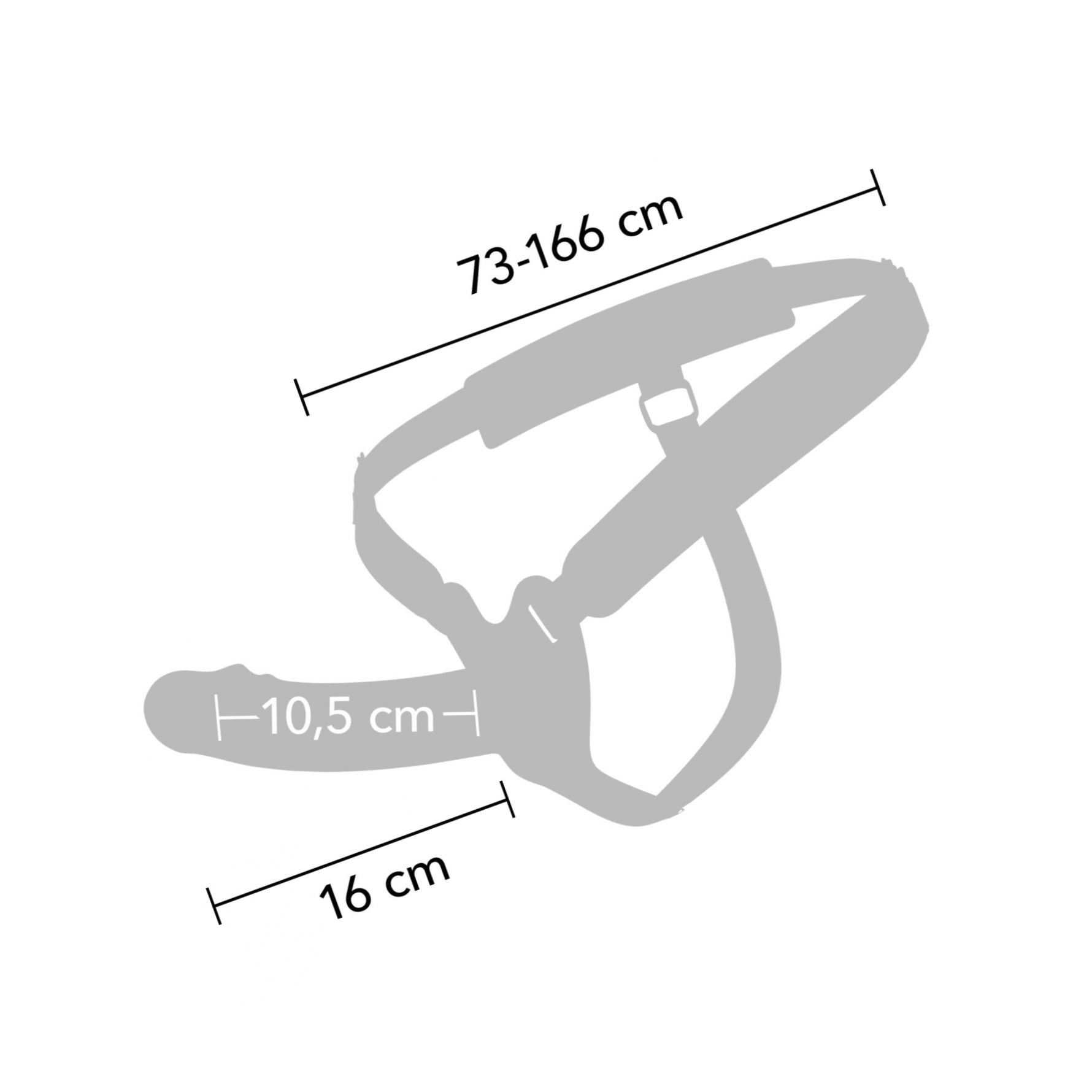 Beneficii și atribute: - Lungime totală: 16 cm, design tubular cu interior gol pentru versatilitate - Material corp: silicon corespunzător cu corpul, sigur - Ham reglabil din piele vegană și nylon pentru fixare confortabilă - Ușor de curățat: clătire cu apă caldă - Recomandat agent de ungere pe bază de apă pentru confort optim - Discret și profesionist: finisaje simple, ușor de integrat în rutina privată - Conferă control bun al ritmului și stabilitate pe parcursul întrebuințării Pentru a încerca senzatii mai profunde si o alunecare mai usoara va recomandam achizitionarea unui lubrifiant. Dezinfectati acest produs inainte / dupa folosire cu o solutie speciala de igiena pentru astfel de produse.