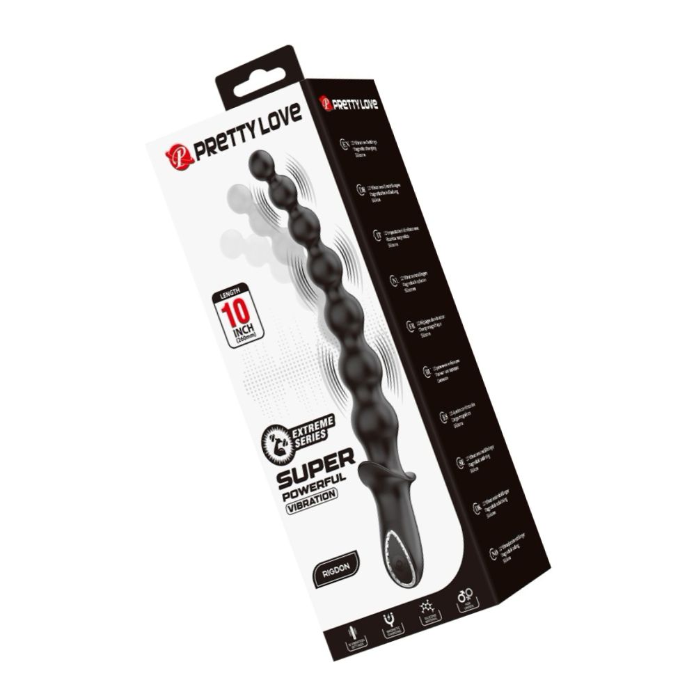 Plug anal vibrator Pretty Love, reîncărcabil, cu 10 funcții. Silicon neted, diametre progresive 1,8–3,2 cm și mărime totală 26 cm. Mâner comod pentru control și scoatere ușoară. Folosiți material lubrifiere pe bază de apă; purificați după fiecare utilizare.