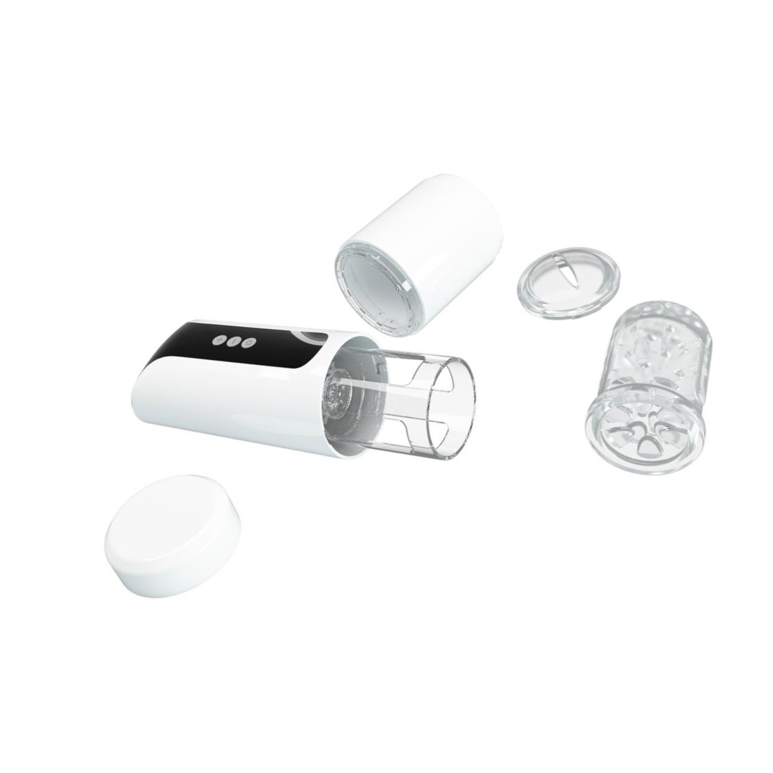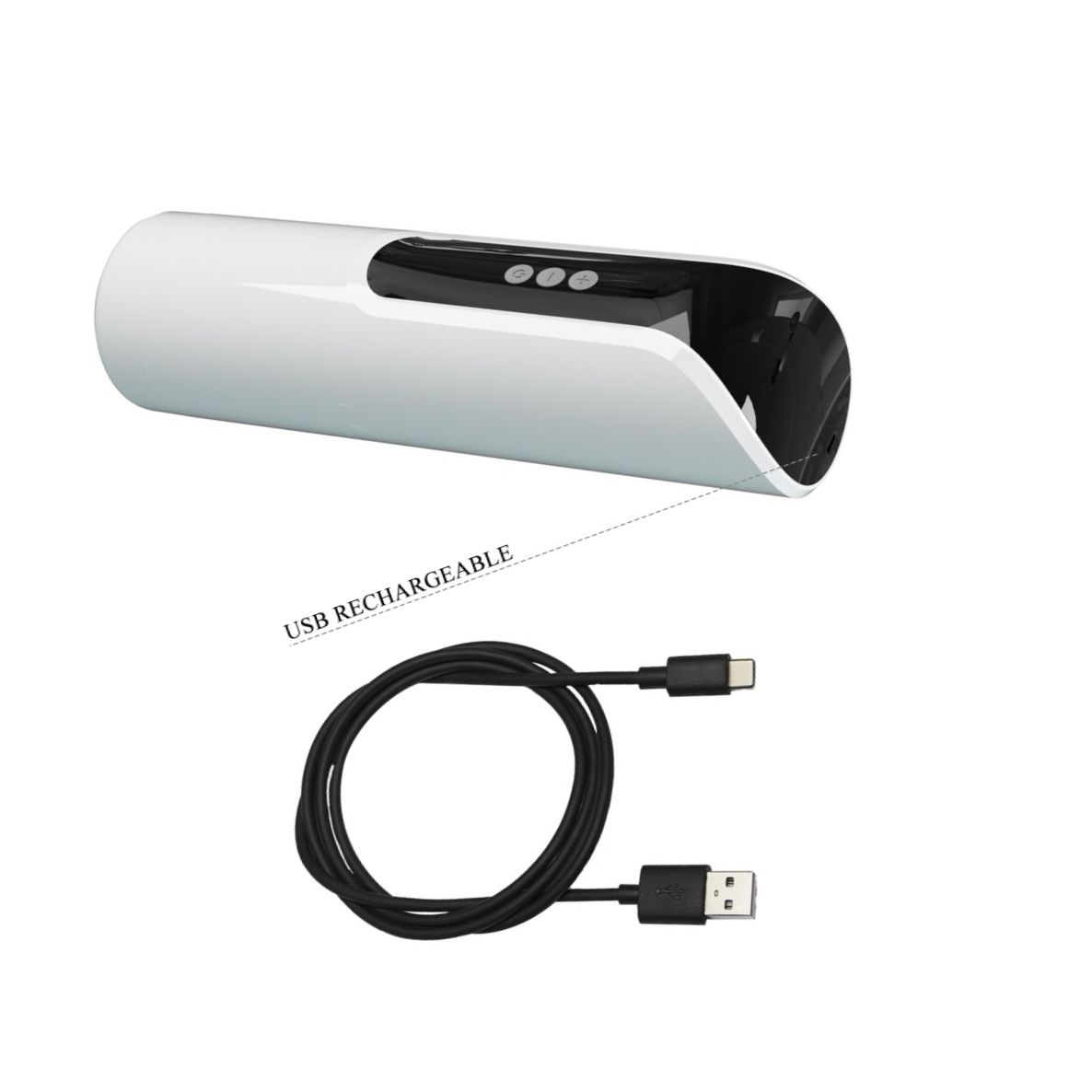 Produsul este reîncărcabil, cu un design compact și nuanțe discrete (alb, transparent). Materialul TPR este flexibil și plăcut la atingere, realizat pentru utilizare repetată.