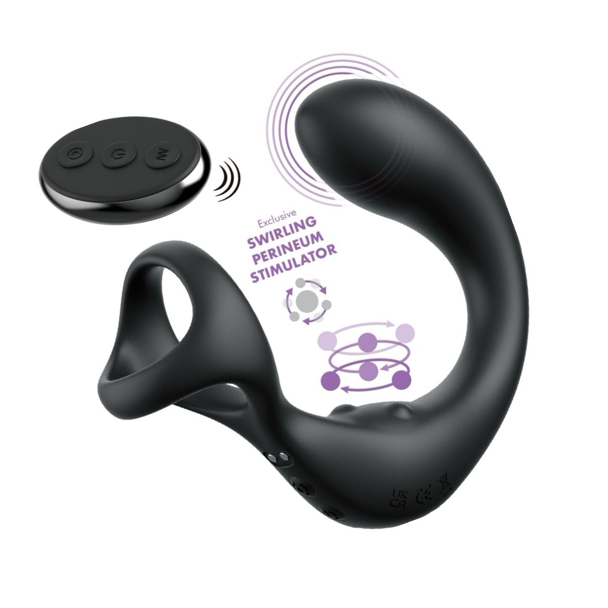 Discret și ergonomic, Taint Alizer combină un plug vibrator pentru prostată, un stimulator care se rotește pentru perineu și un inel extensibil de susținere. Două motoare independente, 3 viteze și 7 moduri, telecomandă, cu acumulator și rezistent la apă.