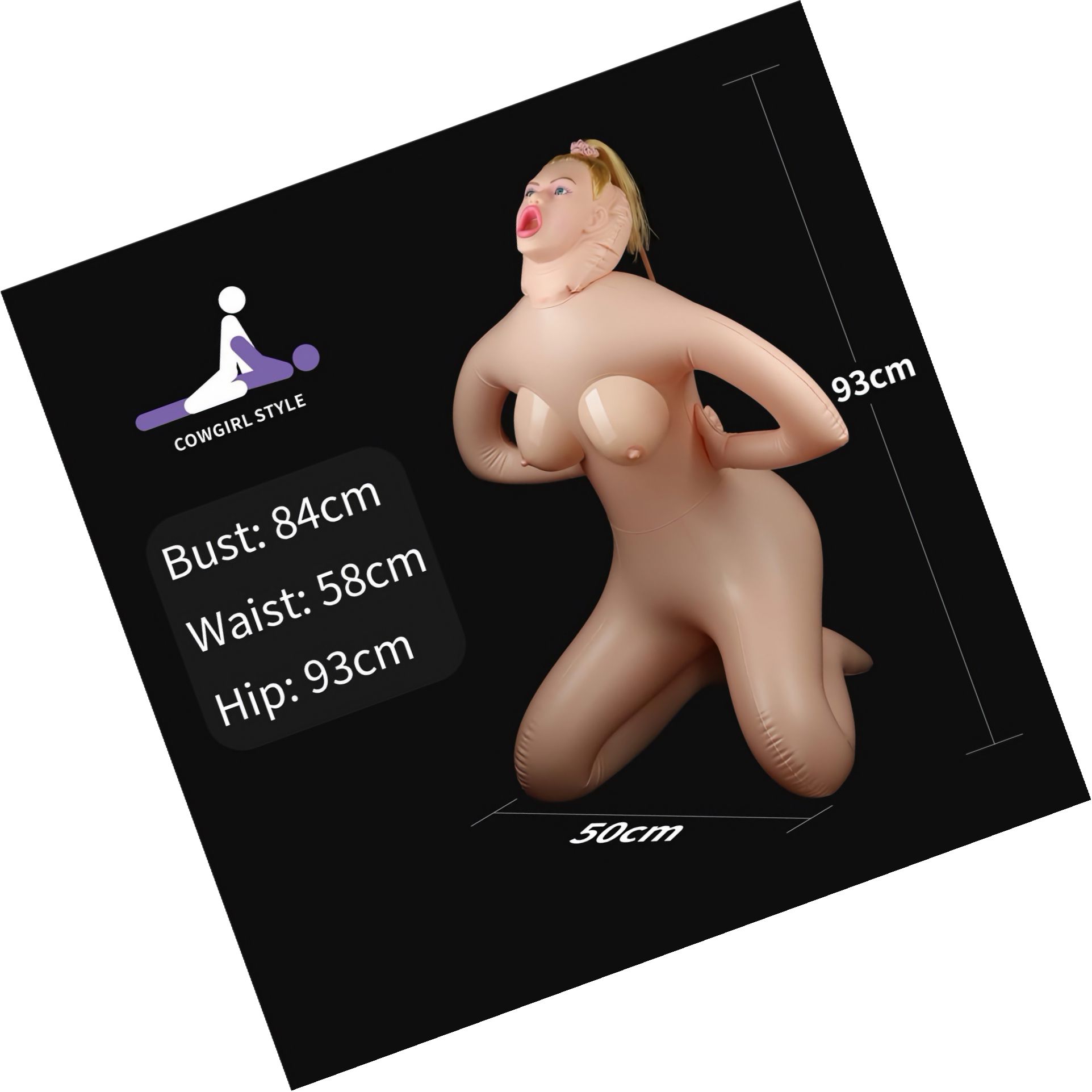 Păpușă dilatabilă Cowgirl Lovetoy, 93 cm, cu față 3D detaliată, păr blond și intrări multiple texturate. Se umflă cu pompă inclusă, se întreține ușor și se depozitează compact. Material TPE pentru senzație naturală.