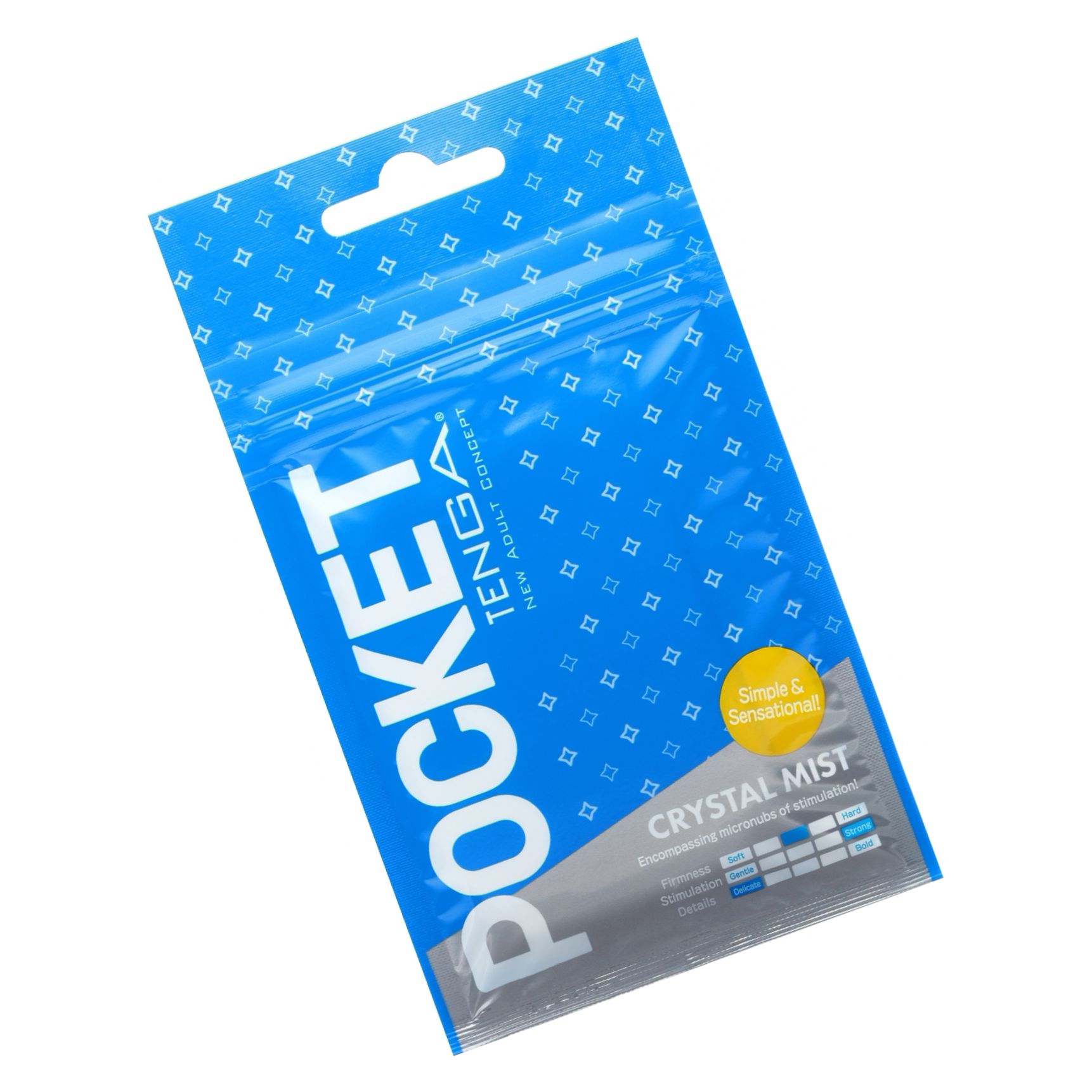 Pocket TENGA Crystal Mist, masturbator compact din TPE cu interior cu particule fine pentru stârnire fermă și constantă. Ambalaj zip sigilat, de unică folosință. Discret, igienic și ușor de transportat.