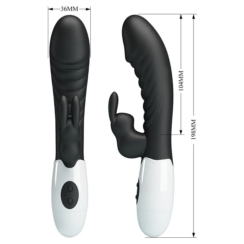 Pretty Love Naughty Bunny este un stimulator dublu, plămădit pentru stimularea punctului G și a clitorisului. Forma flexibilă se mulează ușor și menține contactul cu zona de clitoris pentru o stimulare constantă.