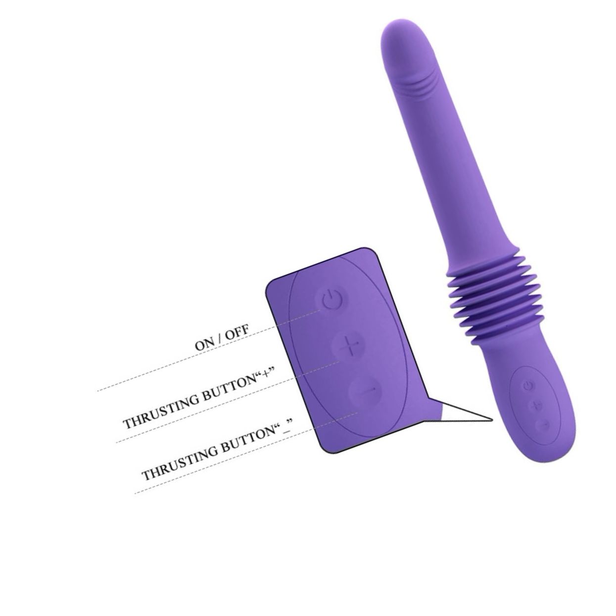 Pretty Love Pazuzu Purple este un vibrator conceput pentru control și manevrabilitate. Mecanismul de pistonare dă o mișcare în față-înapoi cu extensie de până la 7 cm, reglabilă în 3 moduri. Forma ergonomică și mânerul bine proporționat asigură o prindere stabilă.