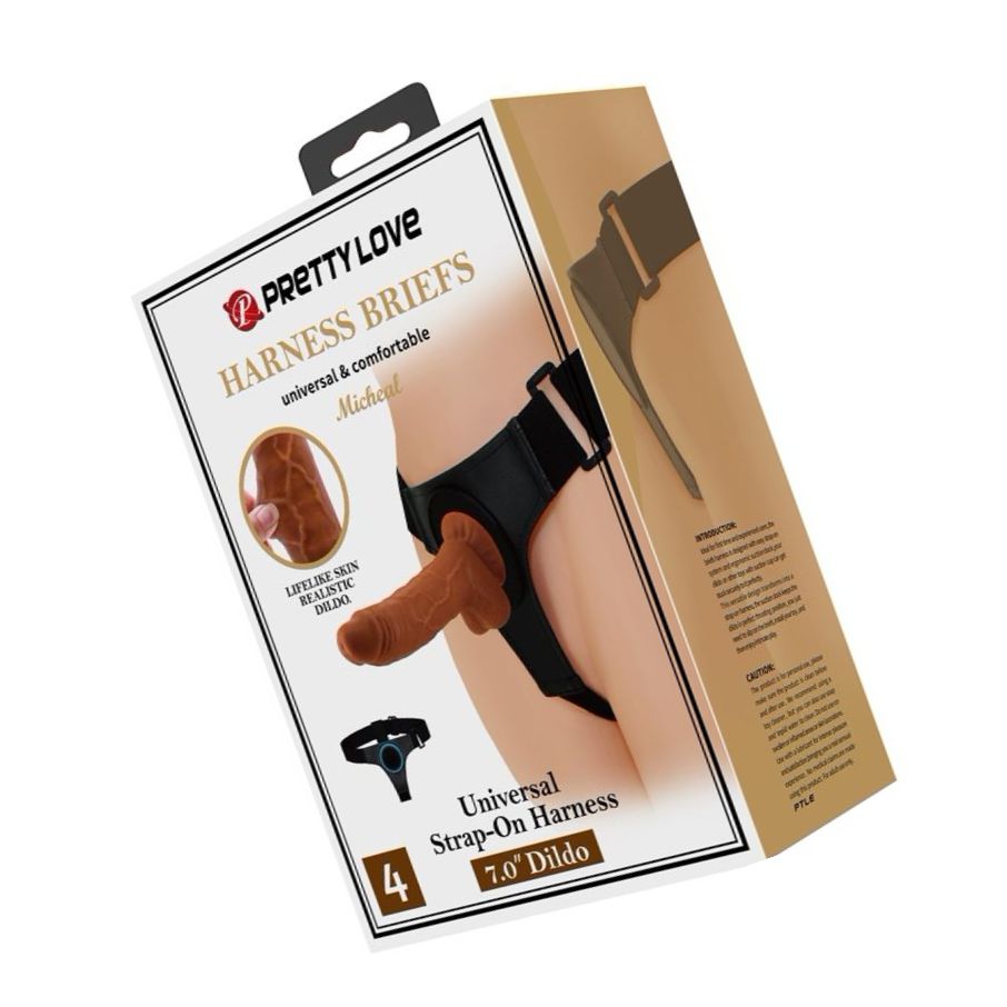 Hamul PrettyLove Michael combină confortul unei centuri ajustabile cu un penis artificial realist inclus, realizat pentru stabilitate și utilizare simplă în cuplu.