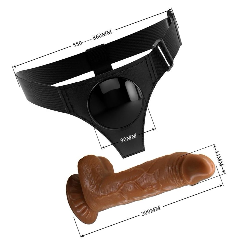 Beneficii și atribute: - Reglaj mijloc 58–86 cm pentru potrivire adaptabilă - Dildo inclus: 20 cm lungime, diametru 4,4 cm - Cingătoare elastice pentru stabilire confortabilă și stabilă - Materiale durabile: ABS, PUM și țesătură elastică - Ușor de curățat și întreținut - Stil discret, potrivit pentru jocuri în cuplu