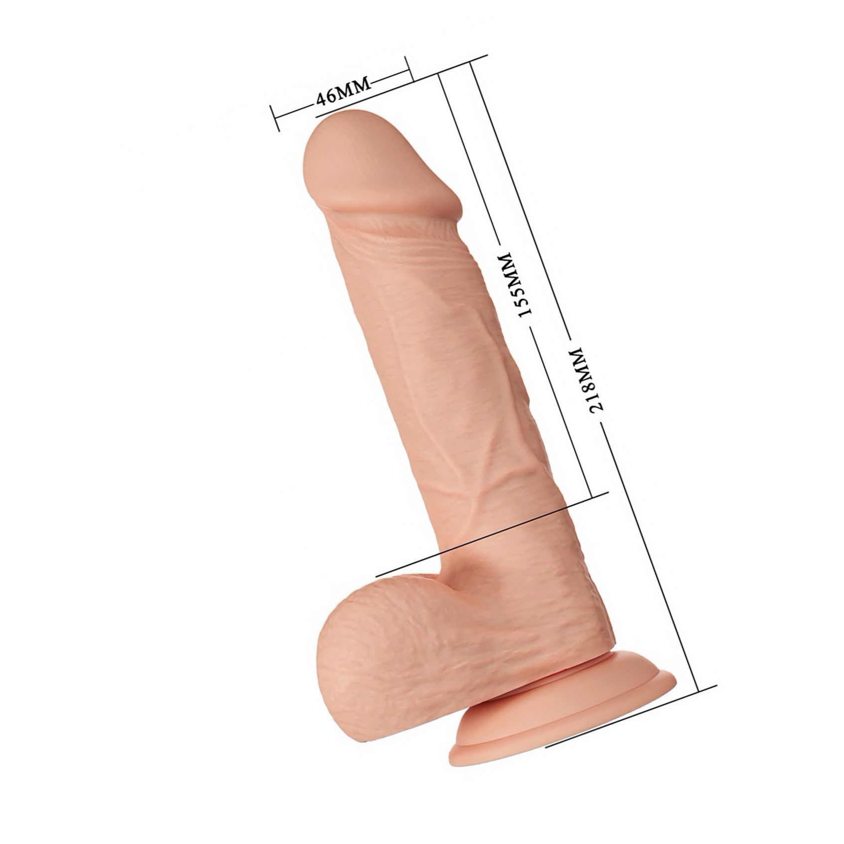 Realist și stabil: Baile Bahamut, 24 cm total, 18 cm inserabili și calibru 5 cm. Textură detaliată pentru senzație naturală și ventuză intensă pentru fixare pe suprafețe netede. Corespunzător pentru utilizatori care caută control și varietate de poziții.