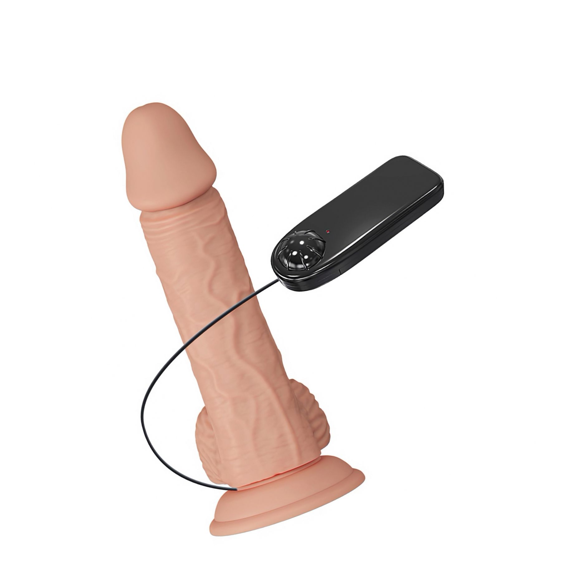 Baza solidă cu ventuză îngăduie reținerea pe suprafeţe netede pentru utilizare hands-free; designul este compatibil cu hamuri conform specificaţiilor producătorului. Telecomanda cu fir, echipată cu rotiţă de reglaj, transmite control necomplicat şi precis al intensităţii vibraţiilor.
