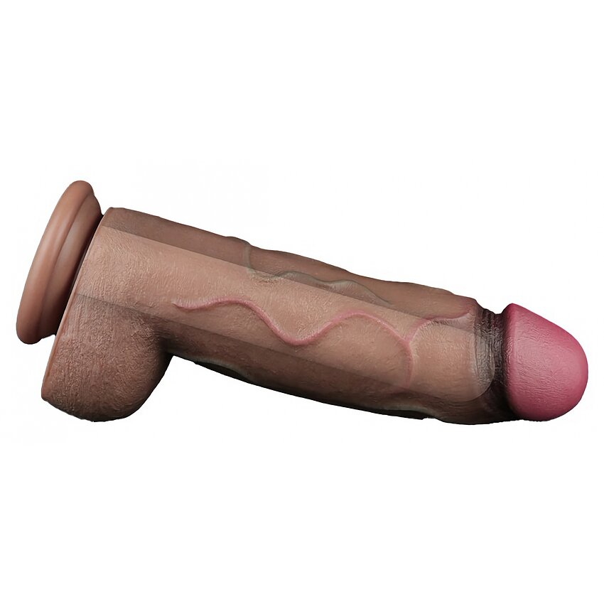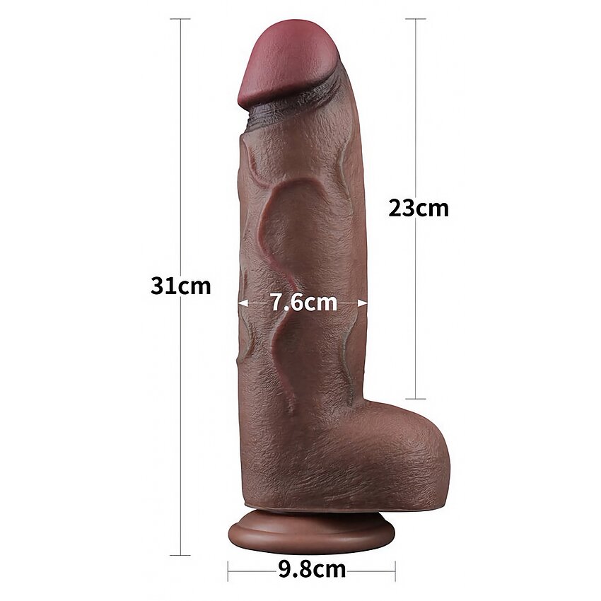 Realist Lovetoy din silicon cu două straturi — 31 cm total (23 cm inserabili), diametru 7.6 cm. Cap rotunjit, textură discretă și bază cu ventuză pentru fixare hands-free. Culoare maro. Ușor de curățat.