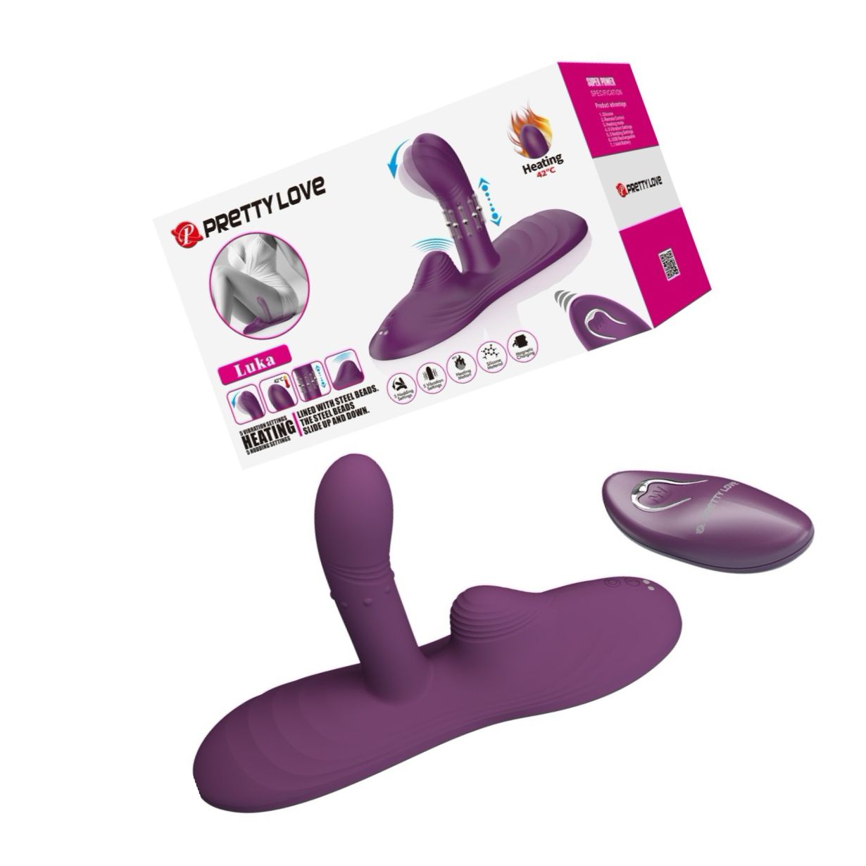Pad-ul Pretty Love Luka este conceput pentru utilizare așezată, combinând un vibrator central cu un stimulator clitoridian integrat în pernuța neted din silicon. Designul pad-ului eliberează presiunea de pe mâini și îngăduie o poziție relaxată pentru utilizare.