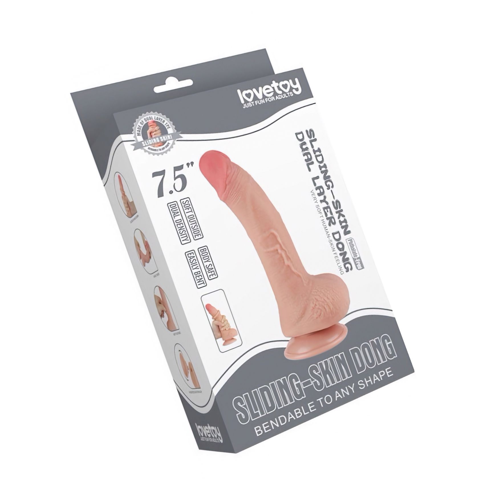 Penis virtual LoveToy Sliding-Skin 19.5 cm, Ø 3.5 cm — material TPE dual-layer cu miez ferm și exterior moale. Ventuză detașabilă pentru hands-free, maleabil și compatibil cu lubrifianți pe bază de apă. Ambalare discretă.