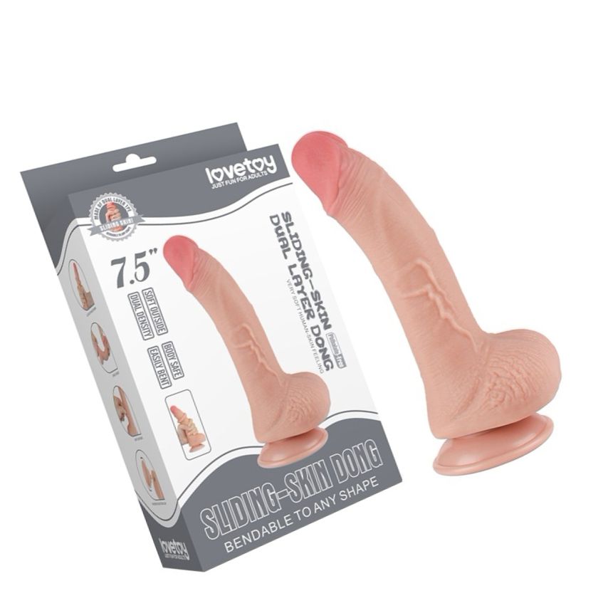 Penis artificial LoveToy Sliding-Skin 19.5 cm, Ø 3.5 cm — material TPE dual-layer cu miez ferm și exterior moale. Ventuză detașabilă pentru hands-free, flexibil și potrivit cu lubrifianți pe bază de apă. Ambalare discretă.
