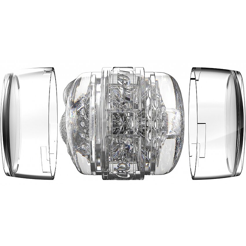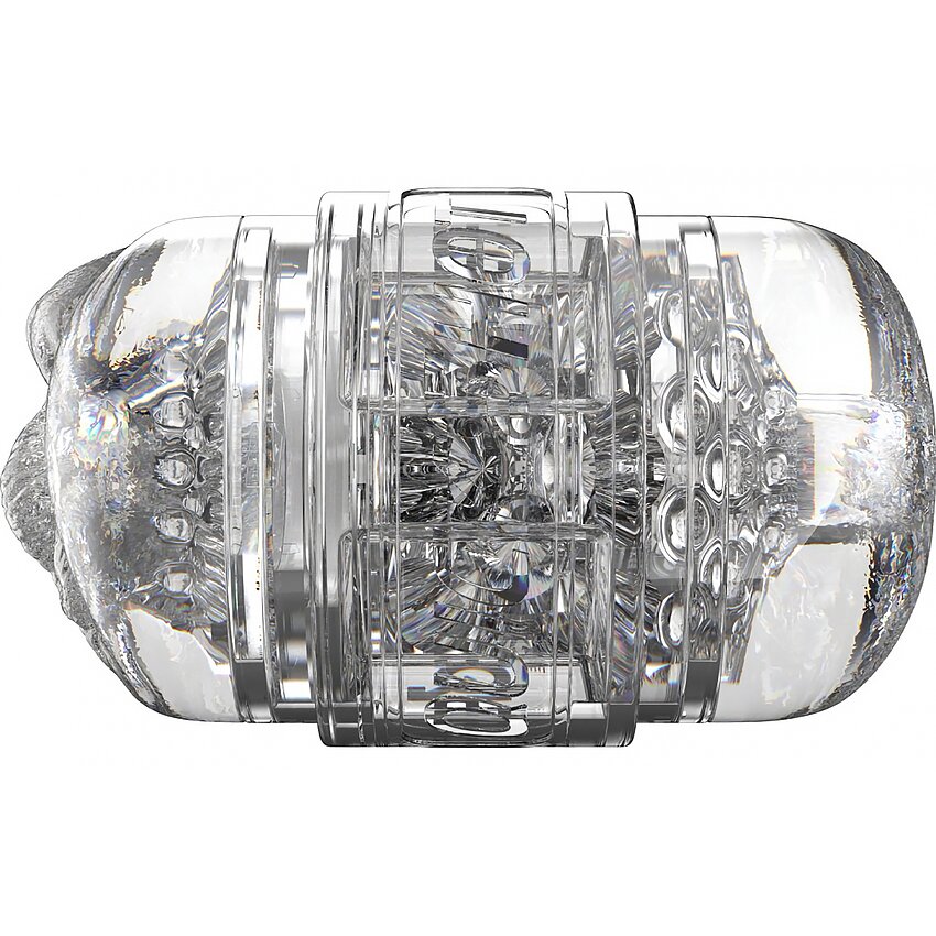 Carcasă compactă şi clară, manșon Superskin patentat pentru textură naturală. Două deschideri modelate oferă variante de stimulare, stil deschis pentru curăţare rapidă şi capace la ambele capete pentru depozitare igienică.
