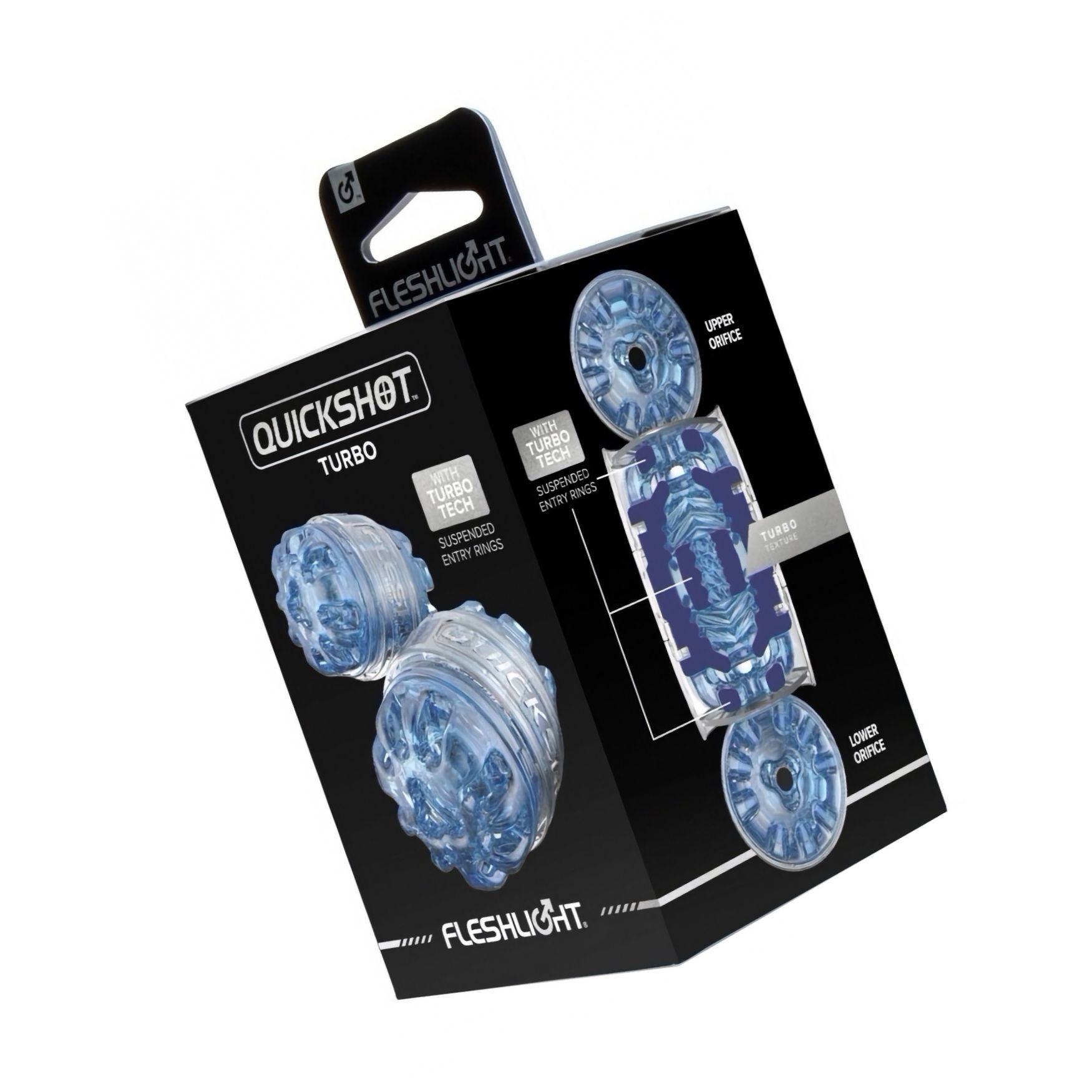 Quickshot Turbo Blue Ice de la Fleshlight este un cilindru compact și discret, proiectat cu Turbo Tech pentru o prindere fermă și emoții dinamice.