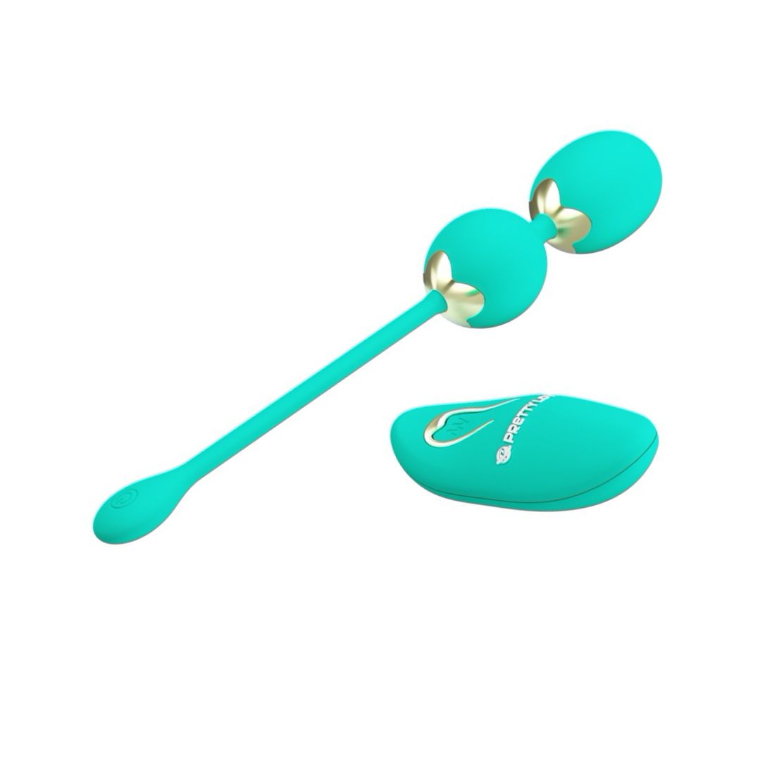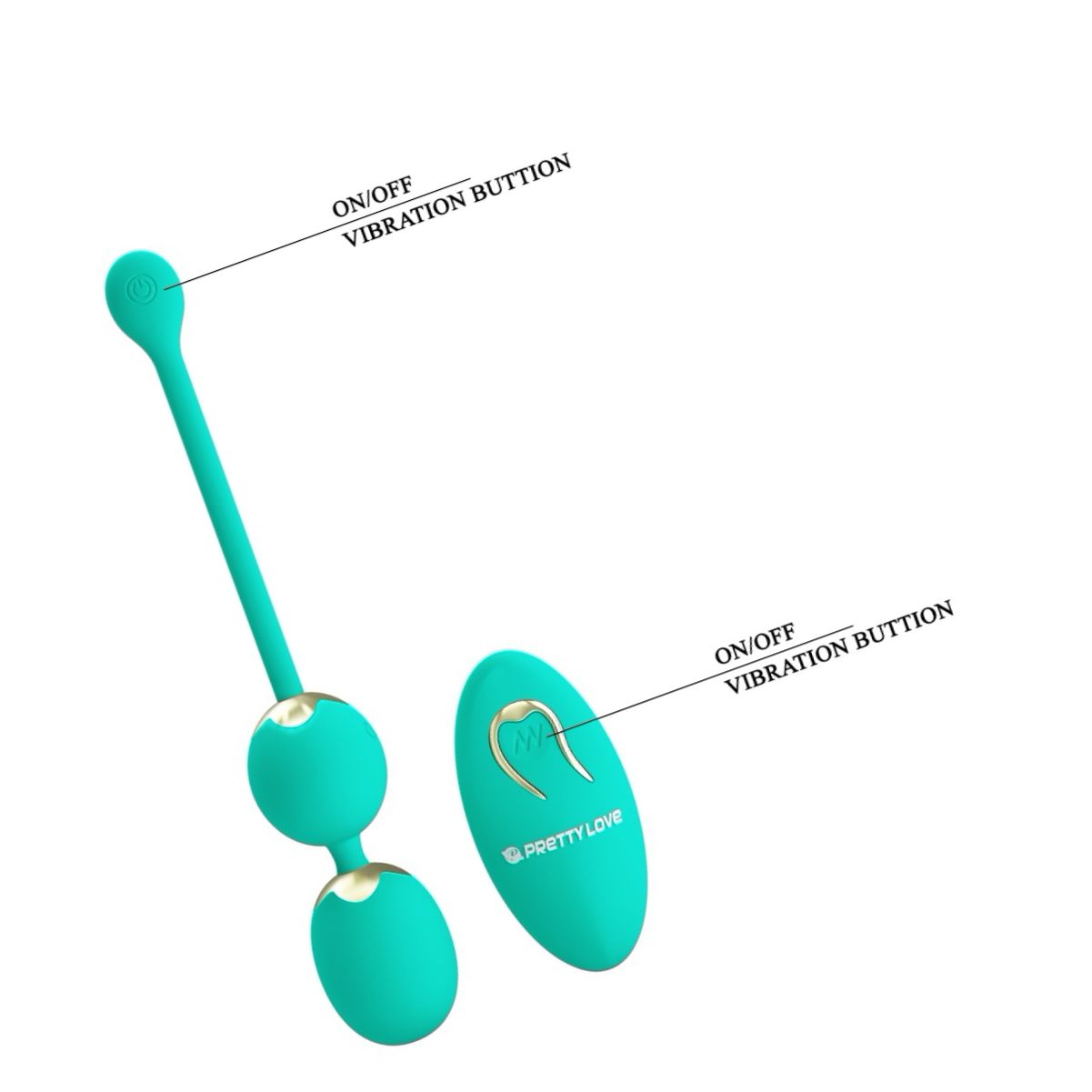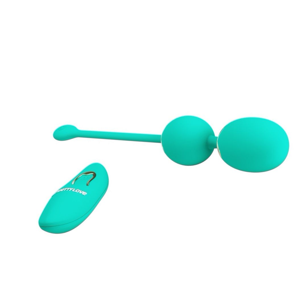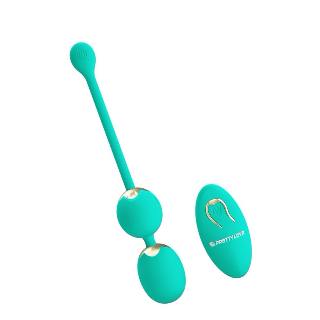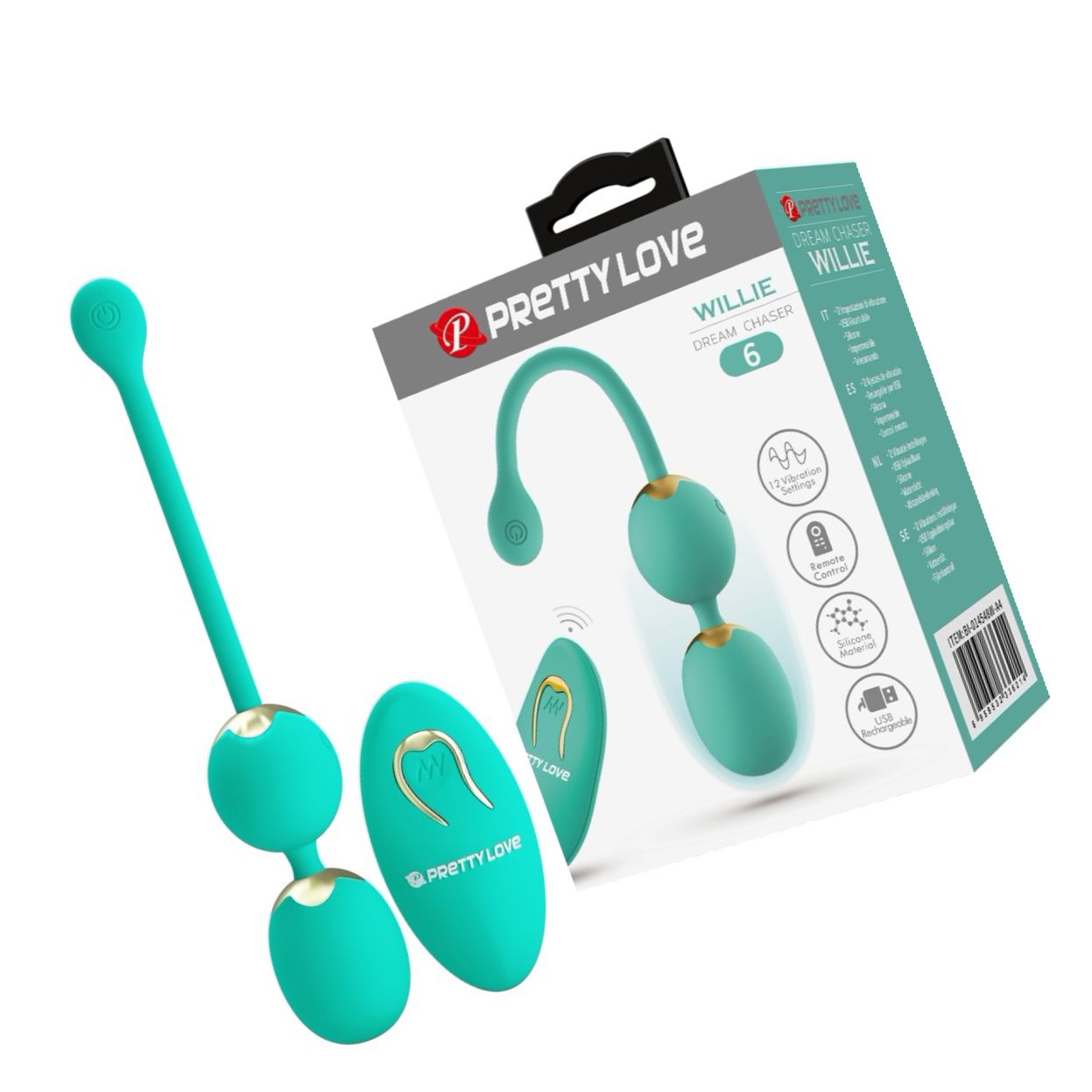 Bile Kegel Pretty Love Willie Green cu tele-comandă și 12 moduri de vibrație pentru tonifierea mușchilor pelvieni. Design discret, ușor de folosit, ideal pentru exerciții regulate acasă sau în deplasare.