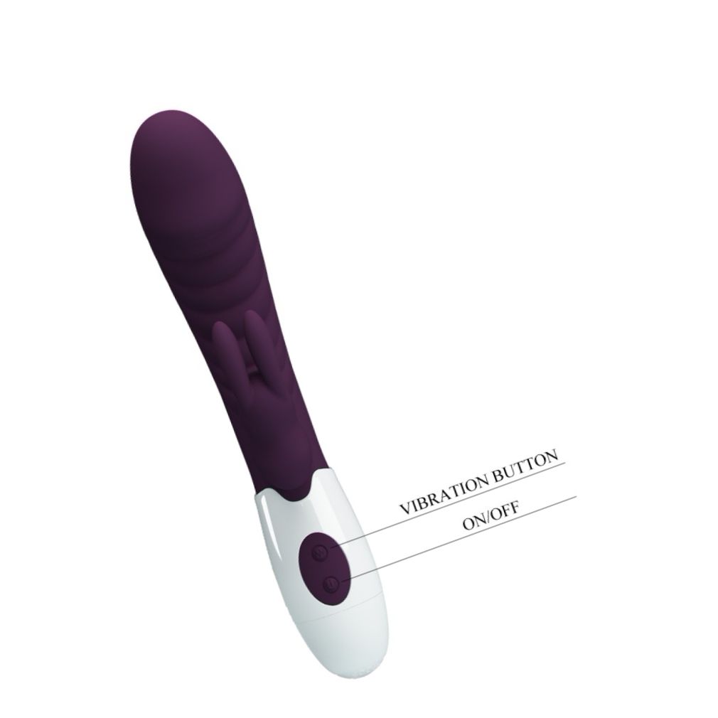 Stimulator dublu Pretty Love, proiectat pentru punctul G și stârnirea clitoridiană. Design flexibil menține contactul, oferind 30 moduri de vibrație puternică. Funcționează pe baterii și are comenzi simple.
