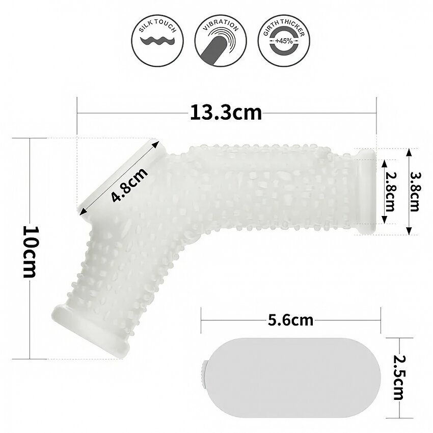 Beneficii și atribute: - Intensifică circumferința cu până la +45% - Manșon extensibil pentru mădular și inel de susținere - Material: TPE sigur pentru corp, excluzând cauciuc și ftalați - Rezistent la apă pentru utilizare și spălare facilă - Vibrație integrată pentru stimulare discretă - Include 1 baterie CR2032 pentru pornire imediată - Reutilizabil, durabil și elastic, proiectat pentru confort Pentru a încerca senzatii mai distincte si o alunecare mai facila ar fi de favorit achizitionarea unui lubrifiant. Spalati materialul finit atat inainte cat si dupa utilizare cu un cleaner special de igiena pentru astfel de produse.