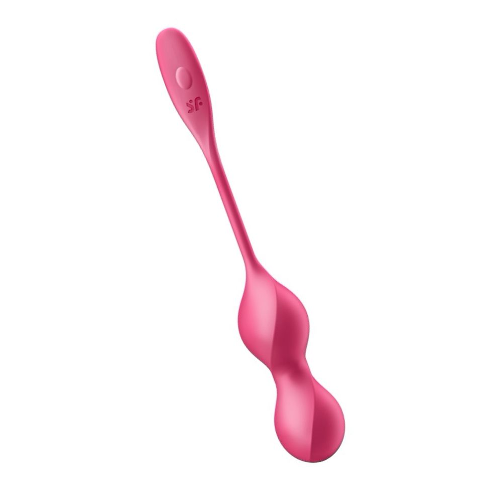 Love Birds 2 de la Satisfyer — trainer Kegel conectabil Bluetooth, din silicon moale, 78.3 g, formă uşor răsucită şi codiţă de retragere. Controlezi local, cu telecomanda sau aplicaţia Satisfyer Connect; 12 programe şi opţiuni personalizabile.