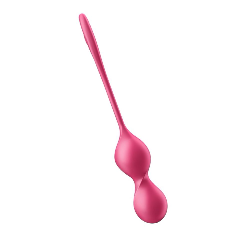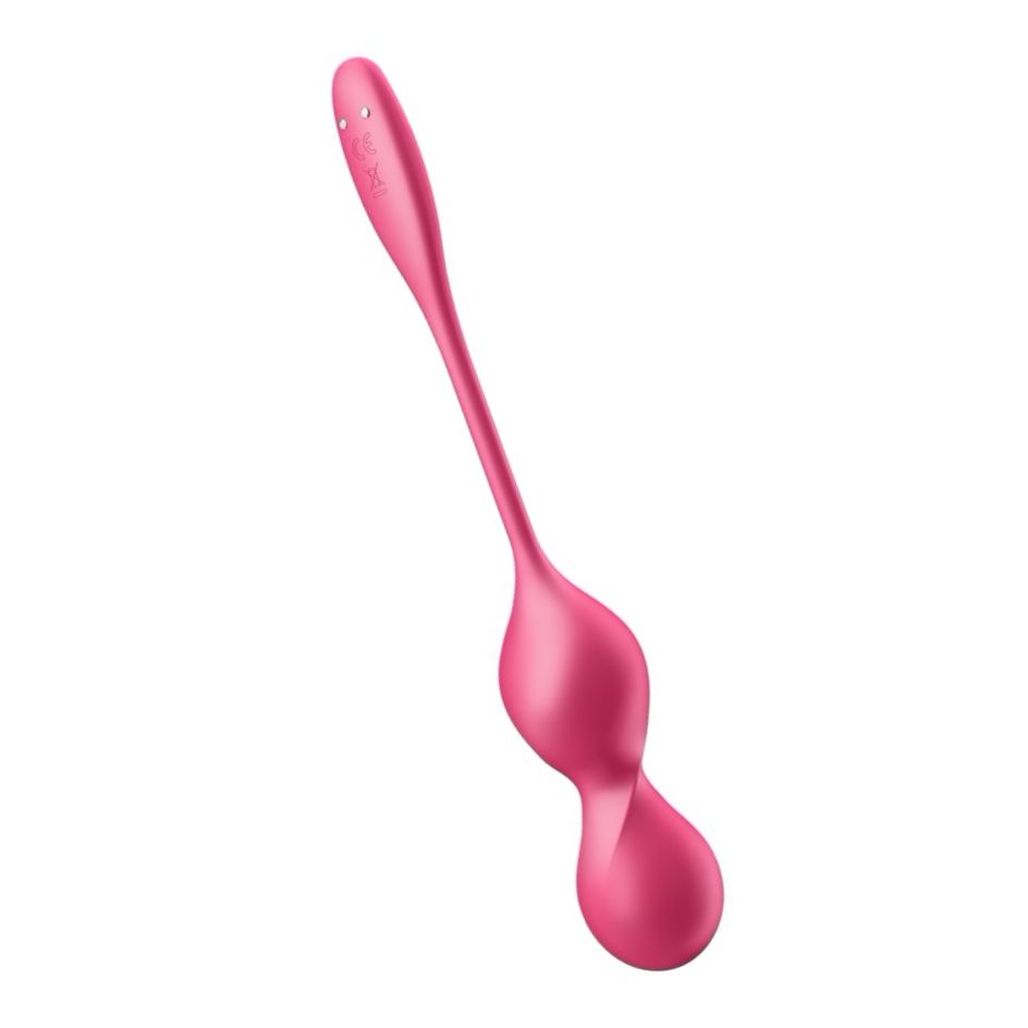 Avantaje/atribute: - Material: silicon moale, afectuos cu pielea - Greutate: 78.3 g pentru o senzație echilibrată și stabilitate în timpul antrenamentului - Formă ușor răsucită pentru o adaptare mai bună la anatomie - Codiţă de retragere pentru siguranță și manipulare facilă - Control multiplu: One Touch, tele-comandă inclusă, aplicaţie Satisfyer Connect (Bluetooth) - 12 programe de vibrație și posibilitate de a salva moduri personalizate - Sincronizare cu muzica și acces la ghiduri audio pentru exerciții - Estetică ergonomic, ușor de curățat