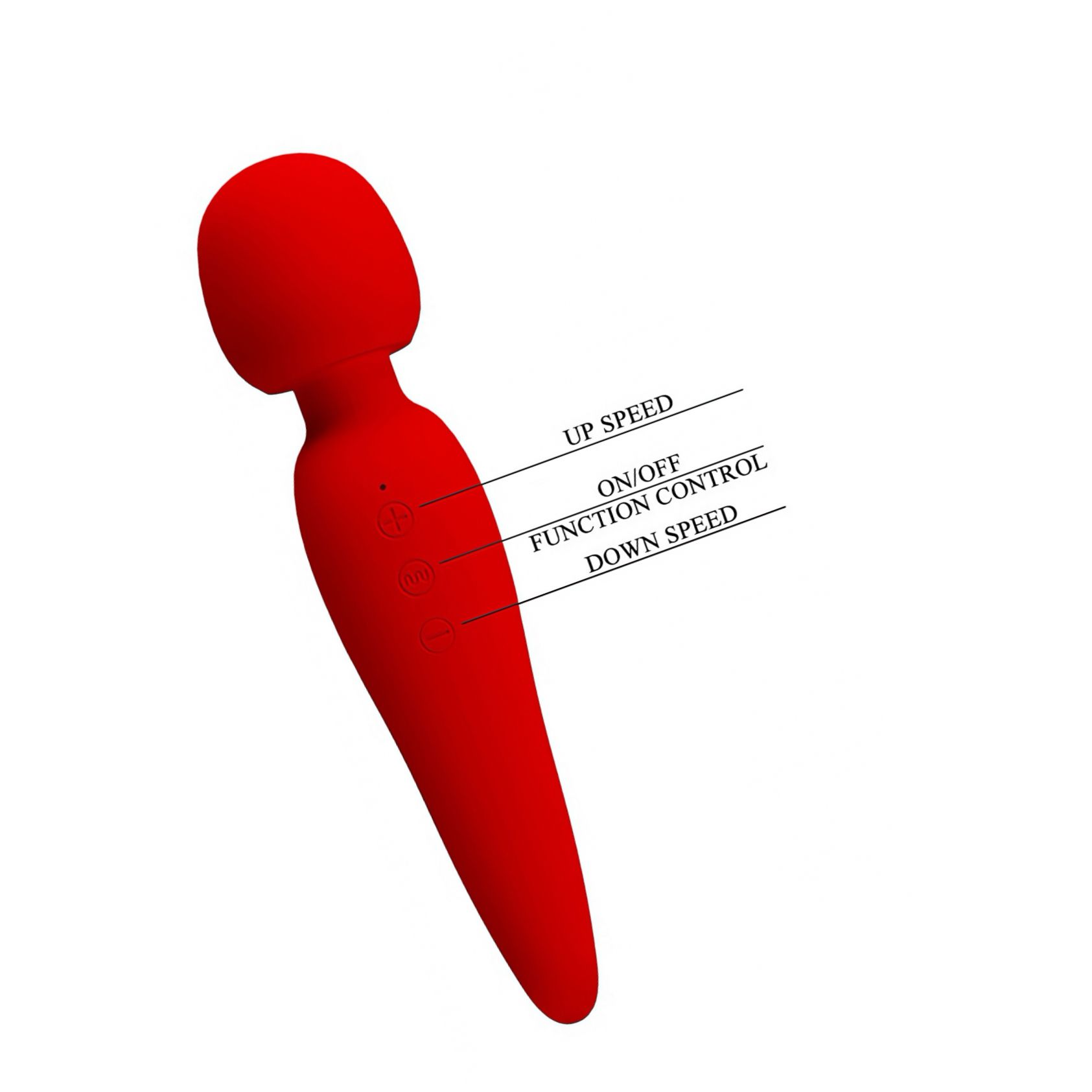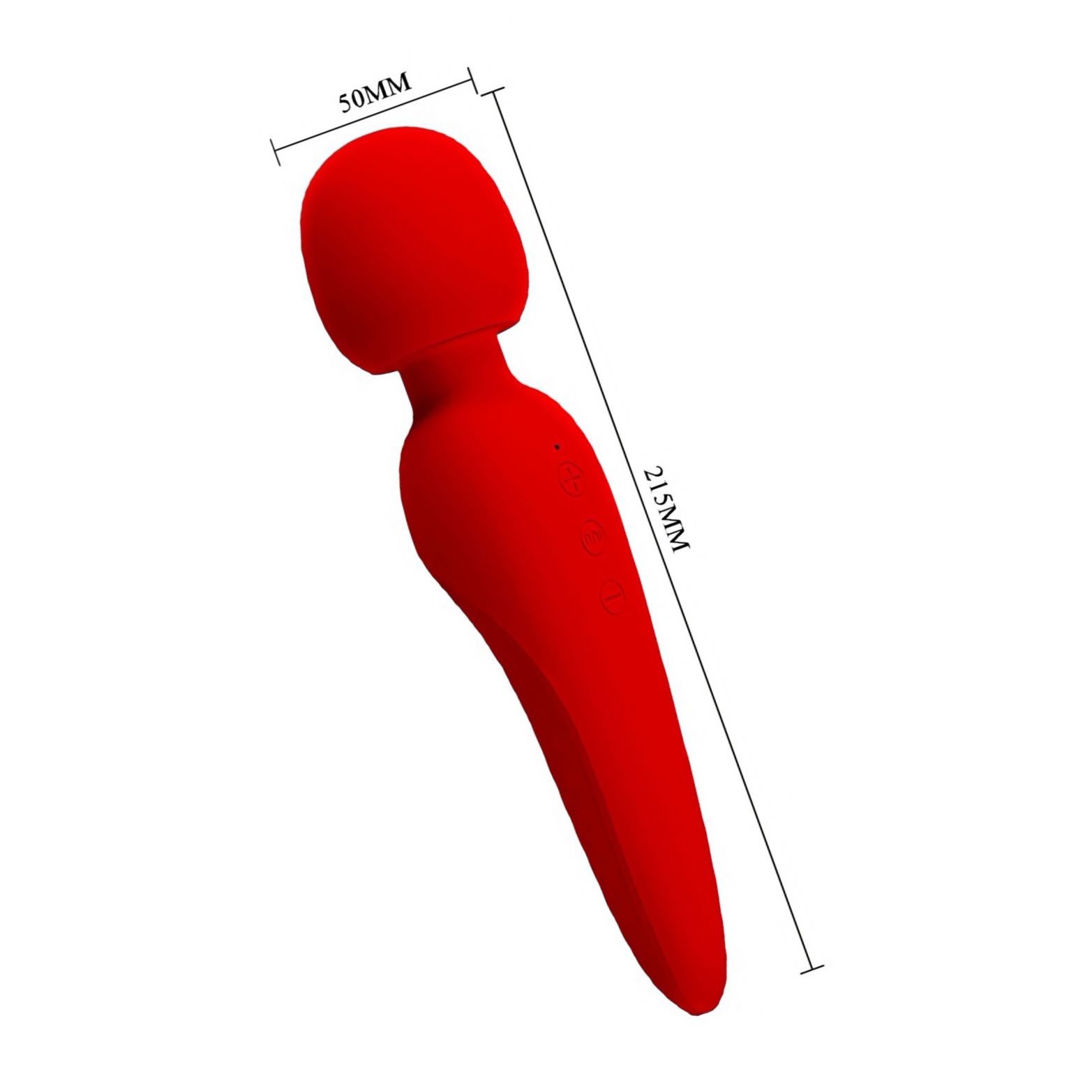 Beneficii și atribute: - Cap neted din silicon, maleabil pentru atingere confortabil - 7 chipuri de vibrație pentru personalizare - Reîncărcabil (fără baterii de unică folosință) - 100% tenace la apă — utilizabil în baie, duș sau jacuzzi - Control simplu, corespunzător pentru utilizare discretă - Design ergonomic, ușor de manevrat și depozitat - Dimensiuni: lungime totală 21.5 cm; diametru cap ≈ 5 cm Pentru a încerca placeri mai intense si o alunecare mai fina ar fi buna adaugarea in cos a unui lubrifiant. Spalati Pretty Love Meredith — Wand 7 Moduri, 21.5 cm, Roșu inainte / dupa utilizare cu o solutie speciala de igiena pentru astfel de produse.