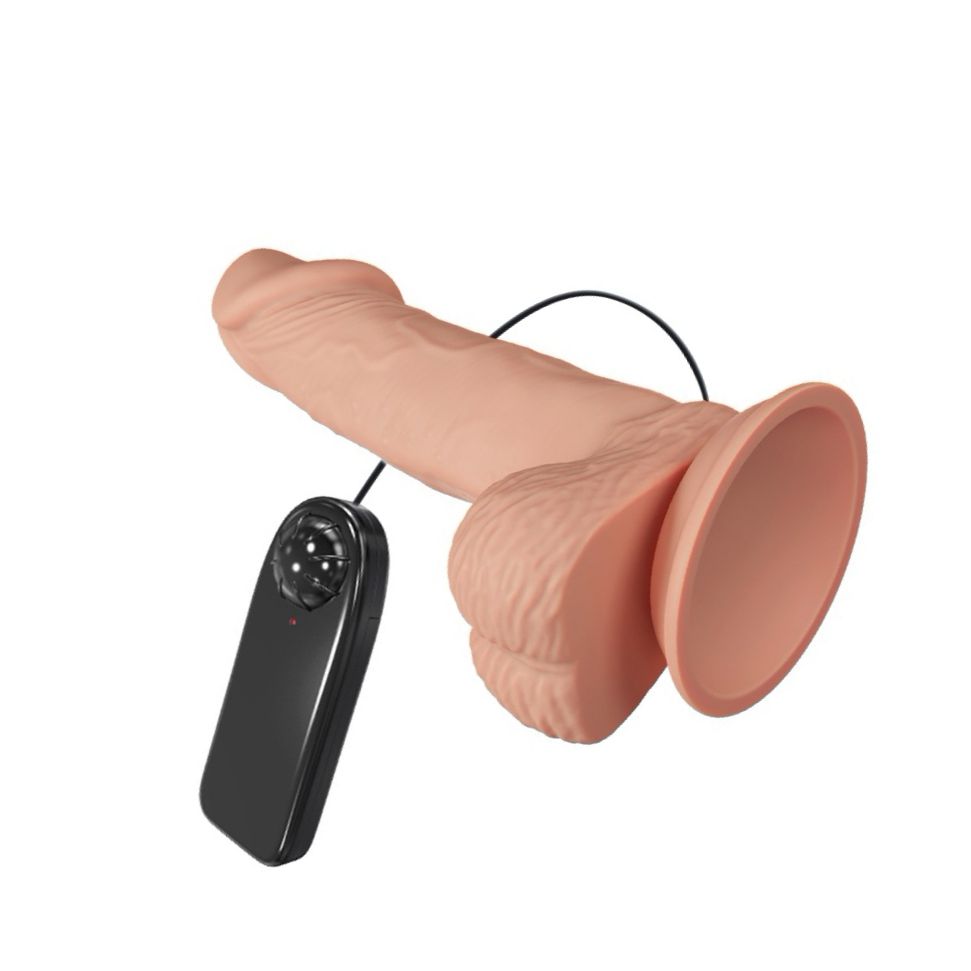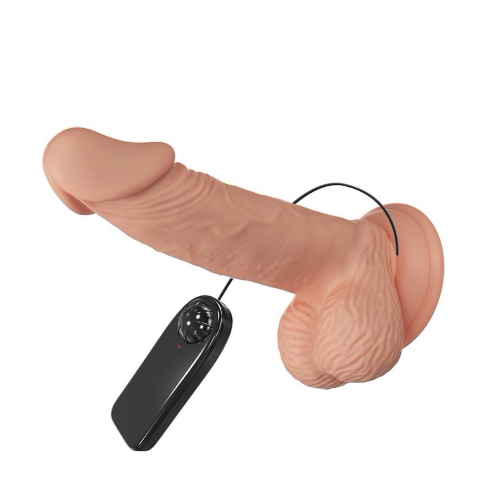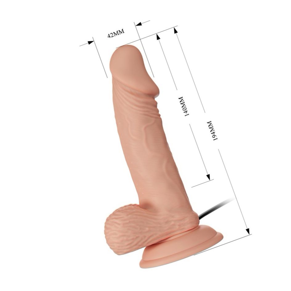 Vibrator realist Pretty Love Zebulon, 19,4 cm: exterior din TPR mătăsos și miez ferm, ventuză intensă pentru utilizare hands-free și telecomandă cu fir pentru reglaj fin al vibrațiilor. Waterproof, curățare ușoară.