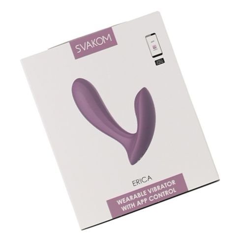 Erica de la Svakom este un vibrator purtabil, conceput pentru stimulare internă și externă prin cele două motoare silențioase care furnizează impulsuri constante. Forma flexibilă se mulează comod pe corp, iar dimensiunile compacte îl fac ușor de purtat discret.